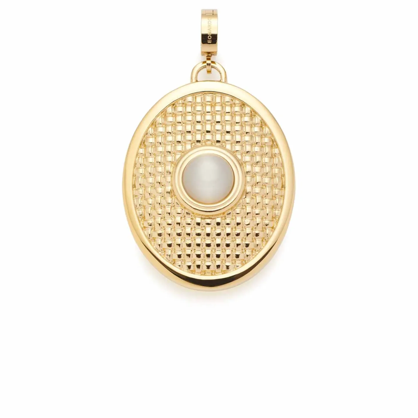 Der ovale Anhänger strahlt pure Natürlichkeit aus und hebt sich mit edlen Strukturen und Materialen hervor. Er ist in einem feinen Edelstahl eingefasst und hat eine besondere Flechtstruktur innerhalb. Als besonderer Blickfang dient ein kleiner Cabochon aus weißem Catseye in der Mitte. Mit einem M-Clip wird er an der Kette befestigt. Vor allem im Mix mit erdigen Tönen wirkt der Anhänger sehr stimmig – er ist eine echte Bereicherung für die Clip&Mix-Serie.