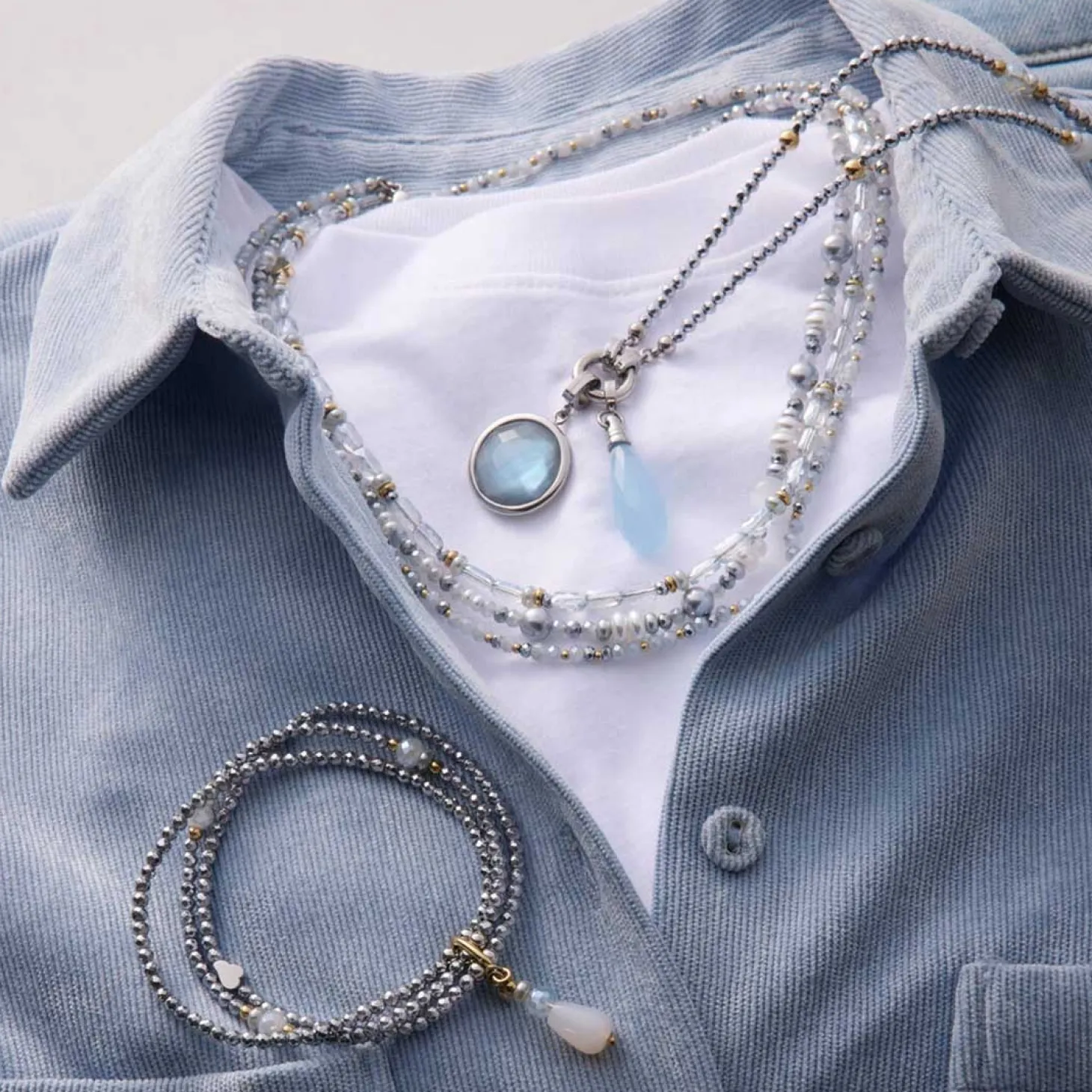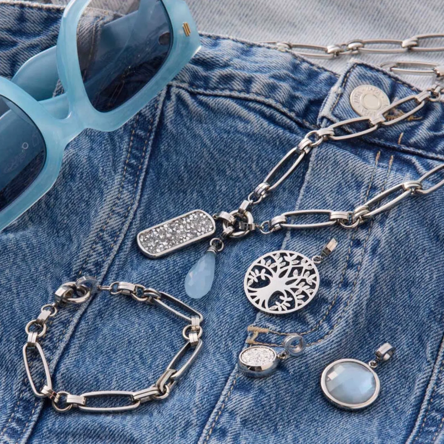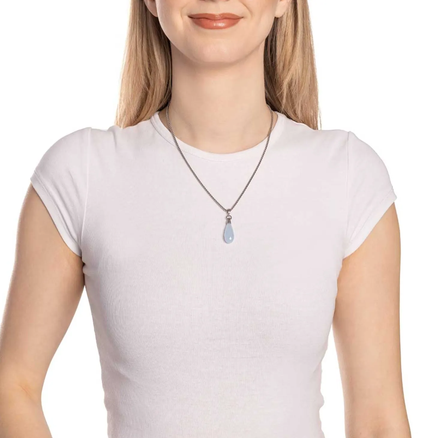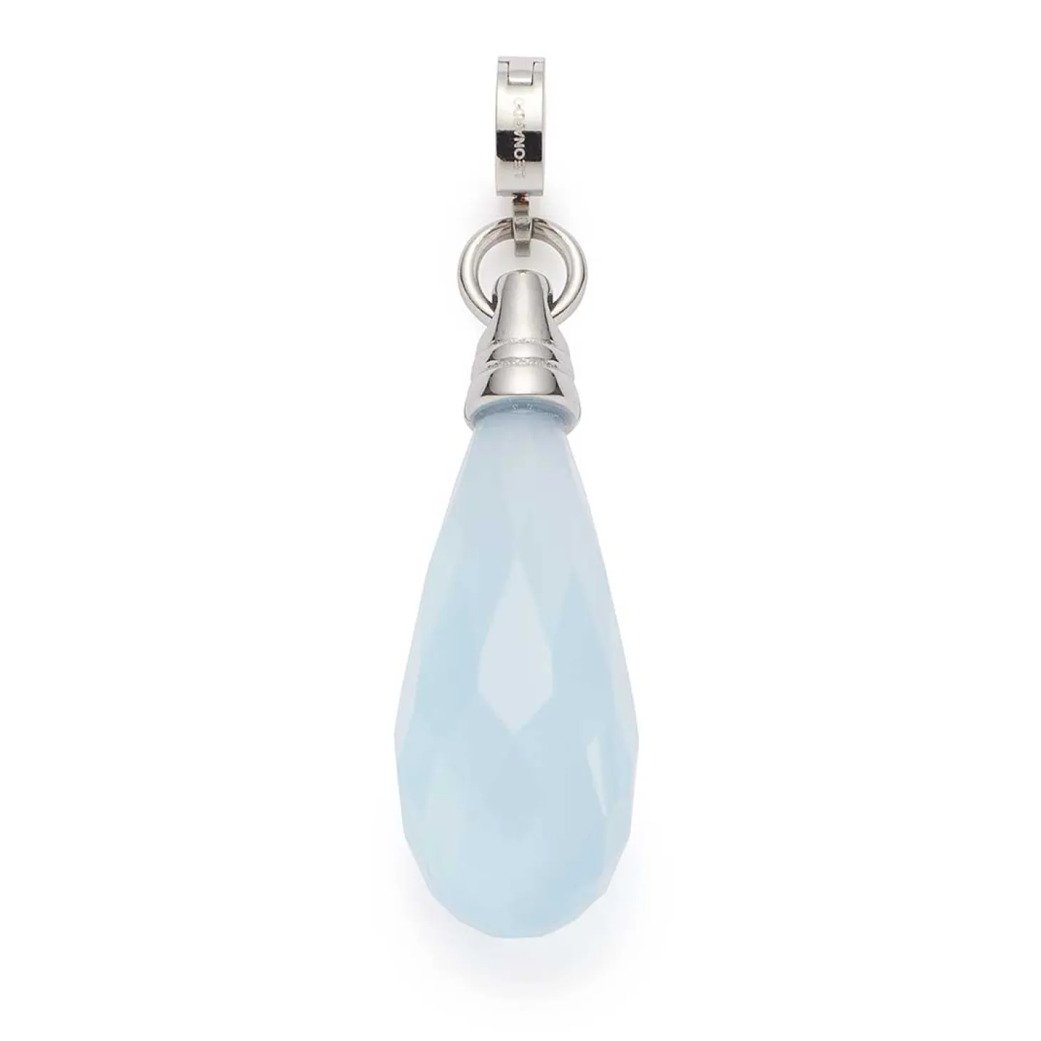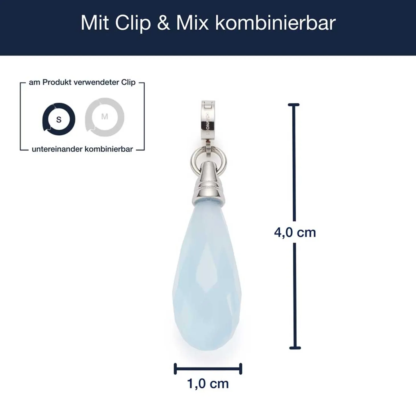 Der Anhänger FRISCO überzeugt mit seiner klaren, modernen Form und einem faszinierenden Farbspiel. Der längliche Anhänger aus poliertem Edelstahl trägt einen facettierten Tropfen aus pastellblauem Catseye, der durch seine zarte Lichtreflexion Tiefe und Glanz erhält. Die schlichte Edelstahlkappe verleiht dem Schmuckstück einen modernen, reduzierten Charakter – ideal für alle, die dezente Eleganz mit einem Hauch Farbe kombinieren möchten. Mit dem Clip in Größe S lässt sich FRISCO flexibel an passenden Basis-Ketten oder Armbändern befestigen und nach Belieben kombinieren.