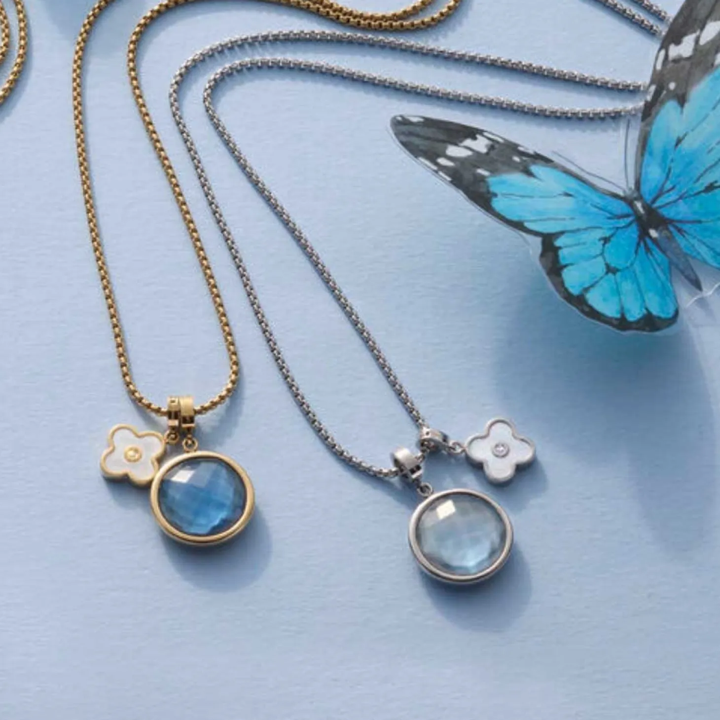 Der Anhänger MINKA überzeugt durch seine schlichte Eleganz und feine Farbwirkung. Der runde Anhänger aus poliertem, goldfarbenem Edelstahl fasziniert durch einen facettierten Glasstein in zarter Farbe, der von einer eleganten Fassung umgeben ist. Die darunterliegende Perlmutt-Schicht sorgt für schimmernde Tiefe und lässt das Licht auf subtile Weise reflektieren. Dieses Zusammenspiel aus Transparenz und Glanz macht MINKA zu einem vielseitigen Begleiter für jeden Anlass – von casual bis elegant. Dank des Clips in Größe M lässt sich der Anhänger mühelos an verschiedenen Ketten und Armbändern befestigen und individuell kombinieren.