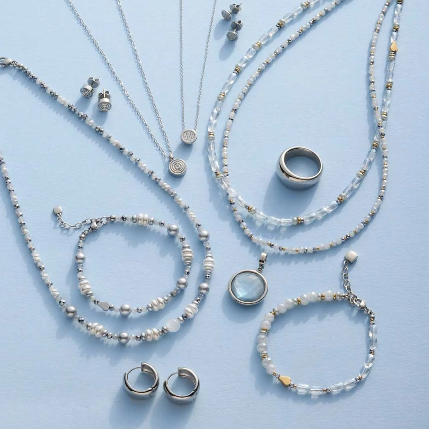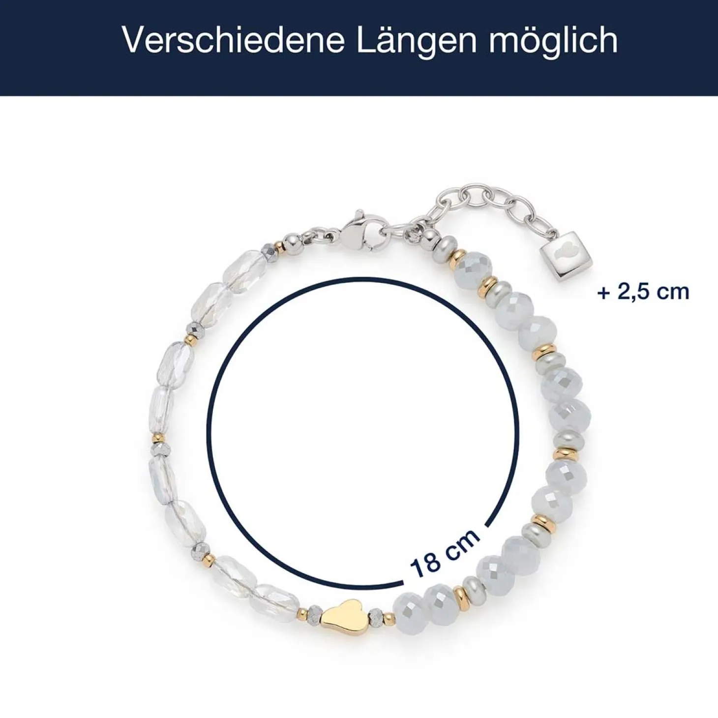Das Armband MARIT von JEWELS BY LEONARDO überzeugt mit einem modernen, femininen Design in zartem Grau-Blau und warmem Gold. Die harmonische Kombination aus facettierten Glasperlen, blauen Perlen und goldfarbenen Akzenten verleiht dem Schmuckstück einen eleganten, sommerlich-leichten Charakter. Mittig setzt die kleine LEONARDO Wolke in poliertem Gold einen stilvollen Akzent, der das Armband unverwechselbar macht. Dank des Karabinerverschlusses mit Verlängerungskette lässt sich die Länge individuell anpassen – für optimalen Tragekomfort an jedem Handgelenk. Ob einzeln getragen oder in Kombination mit der passenden Kette MARIT, dieses Armband ist ein echtes Highlight, das sich wunderbar zu hellen Sommerlooks oder schlichten Outfits kombinieren lässt. Besonders schön wirkt es im Zusammenspiel mit weiterem Schmuck von JEWELS BY LEONARDO.