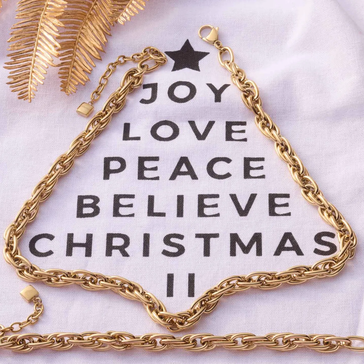 Das Armband SINA ergänzt die kräftige Halskette perfekt und bringt den Bold Elegance-Trend auch an Dein Handgelenk. Die dichten, ovalen Kettenglieder sorgen für eine markante Optik, während der Karabinerverschluss mit Verlängerungskette für eine flexible und angenehme Passform sorgt. Wähle zwischen der kühlen Eleganz von Edelstahl oder der warmen Ausstrahlung der Goldoptik – solo getragen ein Highlight oder im Set mit der Kette ein echtes Fashion-Statement.