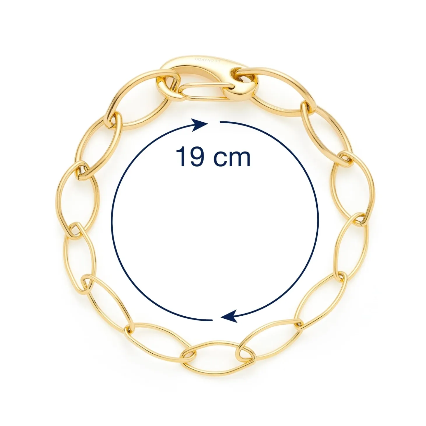 Bist du auf der Suche nach einem absoluten Schmuck-Allrounder? Dann hast du mit diesem vergoldeten Armband genau den richtigen Begleiter gefunden. Ähnlich wie die passende Tory-Kette präsentiert sich auch das Armband mit großzügigen Kettengliedern. In diese kannst du je nach Look diverse Charms einclippen und es so zum stilvollen Bettelarmband verwandeln. Oder du trägst es solo und verleihst deinen Outfits einen elegant-modernen Touch.