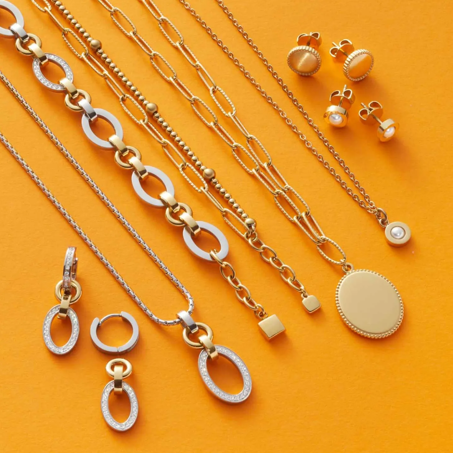 Für einen eindrucksvollen Look sorgen diese Creolen im aktuellen Chunky-Design. Die kleinen Klappcreolen sind vorderseitig mit facettierten Zirkonia Steinchen besetzt. Zwei ineinander gesetzte Kettenglied-Elemente sind in die Creolen eingehangen und verleihen ihnen ihr modisches Bicolor-Design. Das große ovale Element ist ebenfalls mit funkelnden Zirkonia-Steinen besetzt und macht den opulenten Charme perfekt. Wahlweise lassen sich die Creolen auch ohne die Einhänger als kleine Solisten tragen.