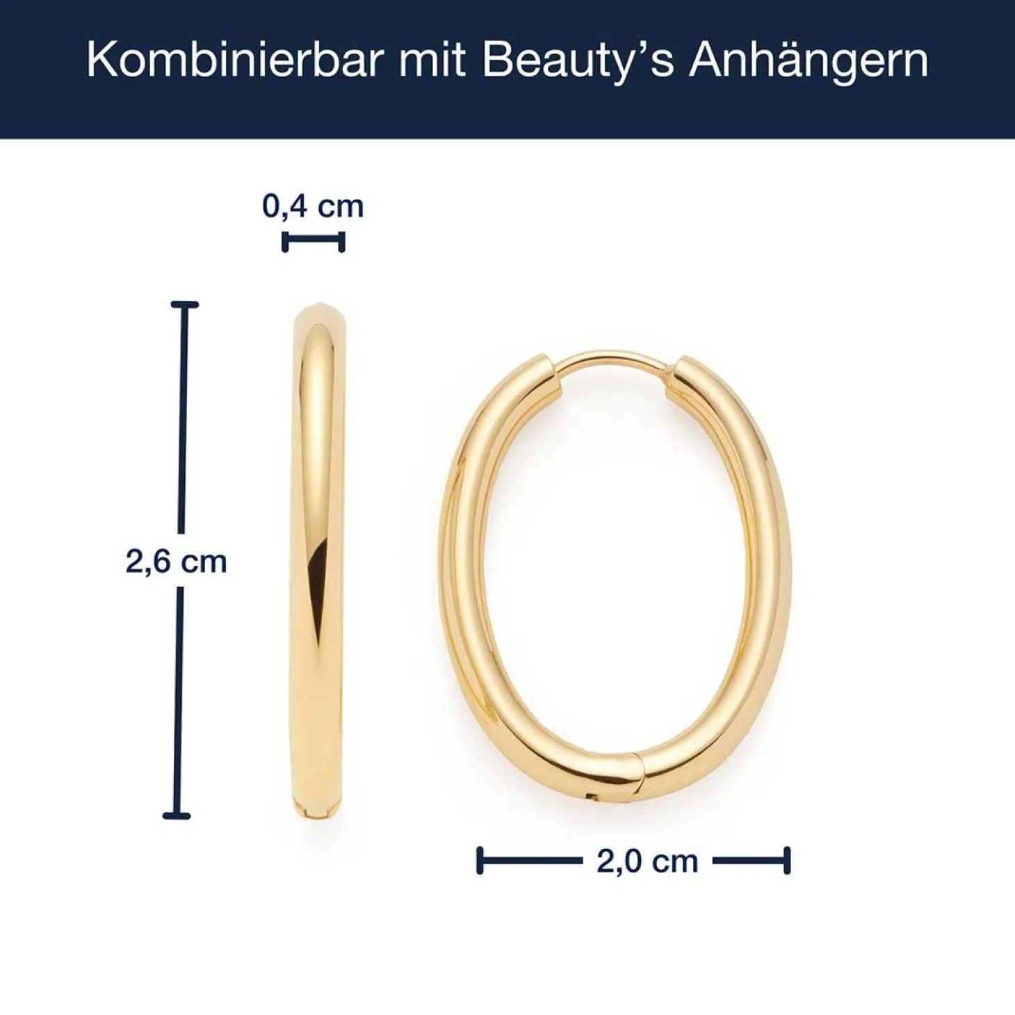 Die Kreole LUZIE überzeugt durch ihre elegante Schlichtheit und ihren warmen Gold-Look, der jedem Outfit eine stilvolle Note verleiht. Die mittelgroße, ovale Form mit rundem Querschnitt sorgt für eine harmonische, feminine Ausstrahlung und macht die Ohrringe zu einem perfekten Allrounder für jeden Tag. Dank des praktischen Klappverschlusses lassen sie sich mühelos anlegen und angenehm tragen. Ob zu lässigen Alltagslooks oder eleganten Outfits – diese goldfarbenen Kreolen setzen dezente, aber wirkungsvolle Akzente. Ihr minimalistisches Design lässt sich vielseitig kombinieren und verleiht jedem Stil einen Hauch moderner Eleganz. Ein zeitloser Klassiker, der in keiner Schmucksammlung fehlen darf.
