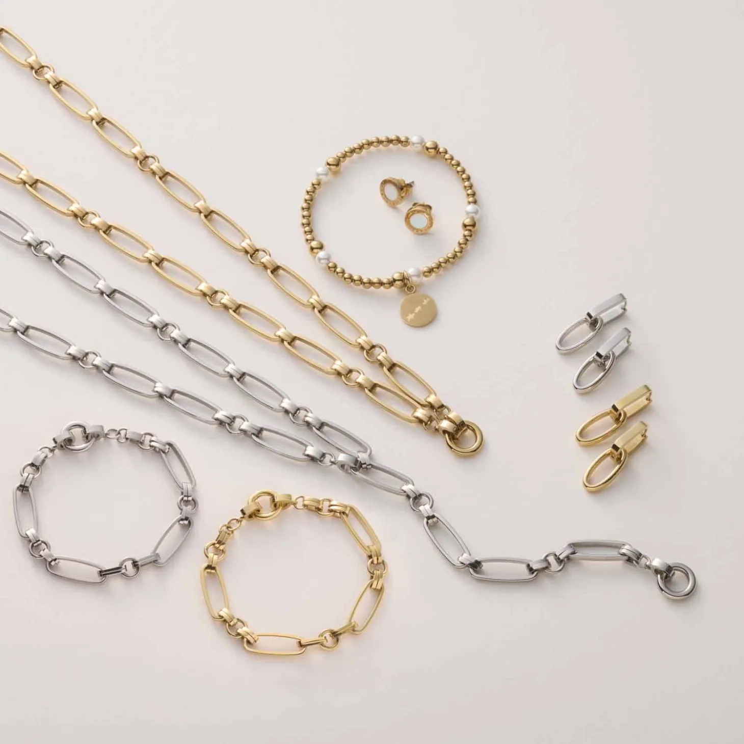 Die Creole MATHILDE ist mehr als nur ein Basic: Die auffälligen Klapp-Kreolen im kantigen U-Shape tragen lose eingehängte Kettenglieder, die das Design von Kette und Armband widerspiegeln. Für einen schlichteren Look lassen sich die Anhänger einfach abnehmen – so wird die Creole im Handumdrehen zum vielseitigen Allrounder. Ideal für Frauen, die wandelbaren Schmuck lieben und den Chunky Chains Trend stilvoll umsetzen wollen.