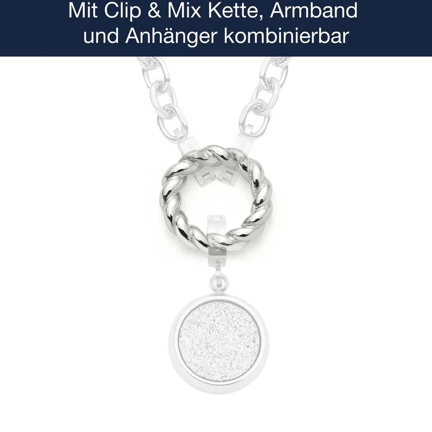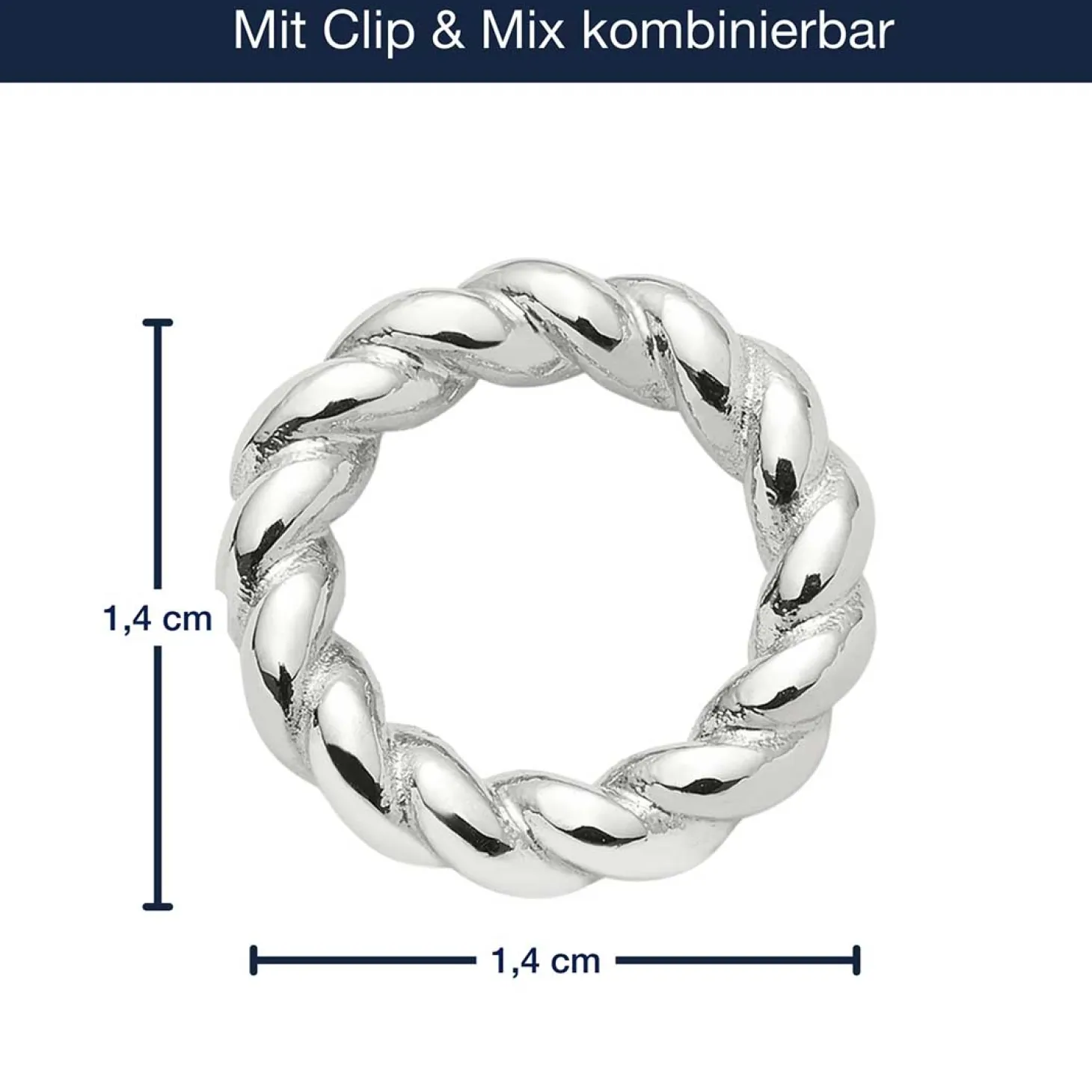 Der ClipRing LIESEL in schlichter Edelstahl-Optik überzeugt durch seine dezente Kordelstruktur. Dieses flexible Schmuckelement ergänzt Deine Clip & Mix Kette oder Dein Armband mit einer feinen, modernen Note – ideal für puristische und dennoch individuelle Looks.