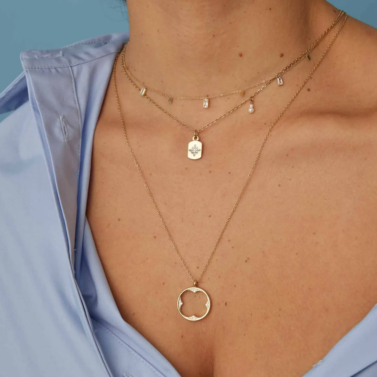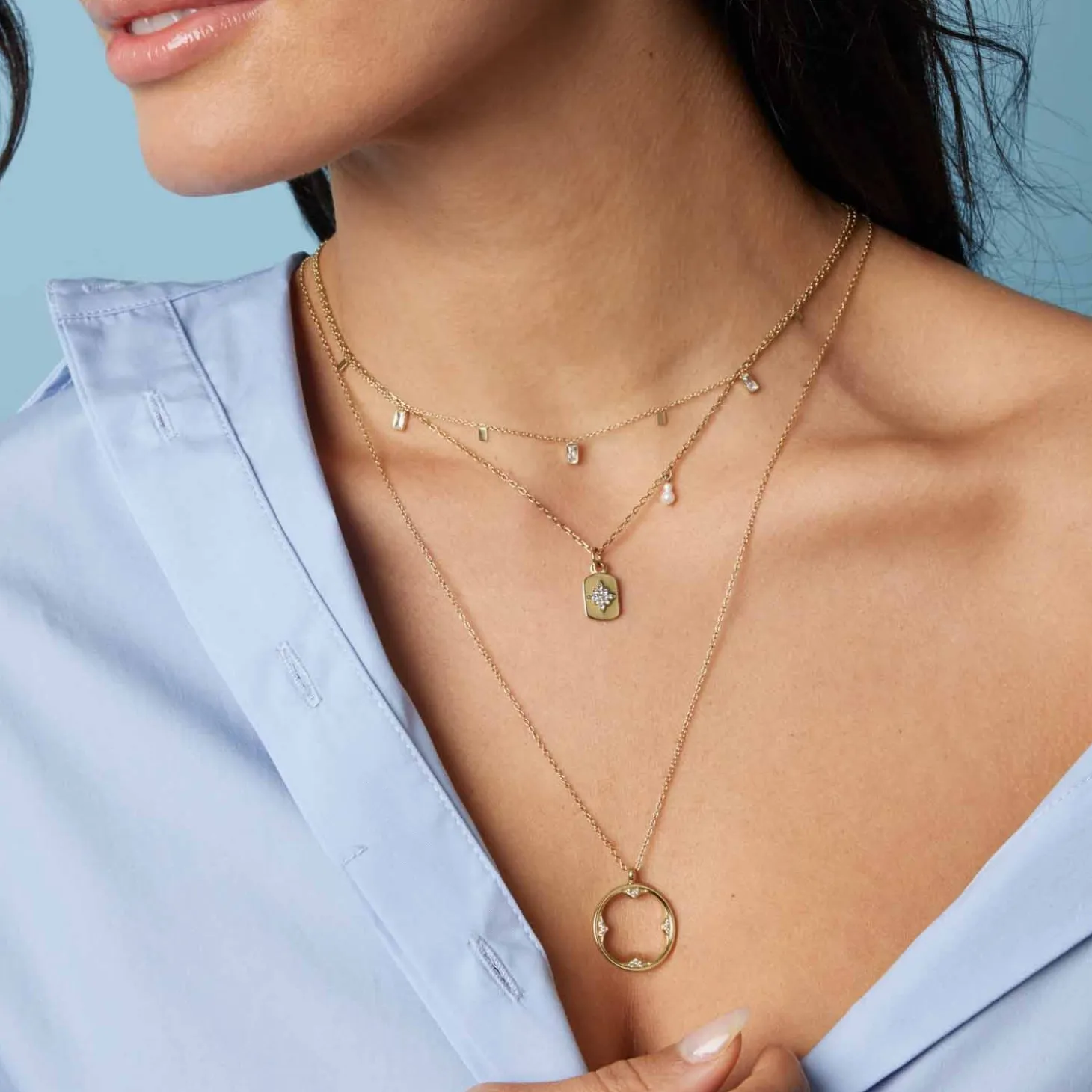 Die kurze Ankerkette aus goldenem ionenplattierten Edelstahl macht sich schön in angesagten Layering-Looks, überzeugt aber auch solo getragen. Den Mittelpunkt spielt ein weich geformter, rechteckiger Anhänger. Kleine Zirkonia Steinchen in Form eines Sternes bringen den Anhänger zum Funkeln. Zusätzlich sind in der Kette zwei übereinander angeordnete Perlen eingehängt und bilden einen charmanten Kontrast. Mit der Verlängerungskette kann die Länge individuell angepasst werden.