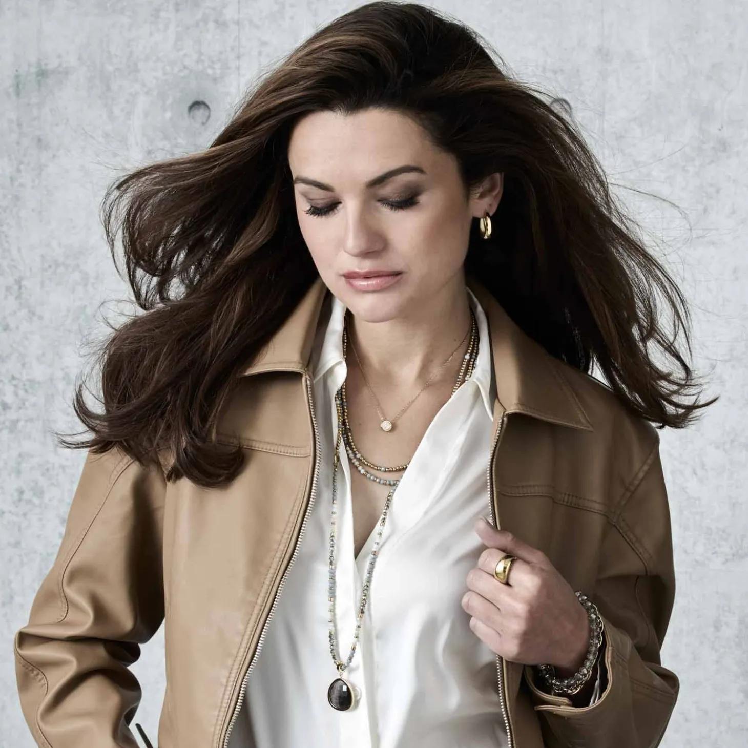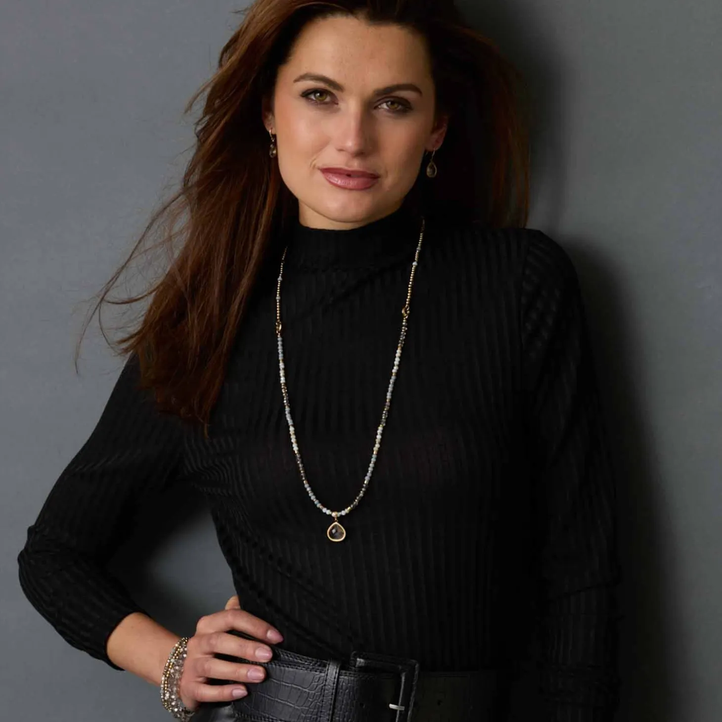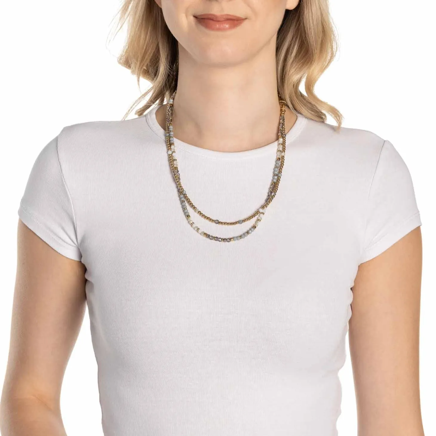 Verleihe Deinem Look eine stilvolle Tiefe mit dem edlen Collier BERNADETTE. Dieses atemberaubende Zierstück kombiniert sanft glänzende Goldkugeln mit schimmernden Glasschliffperlen in gebrochenem Weiß, mattem Grau und Rauchglas-Optik – ein Farbspiel, das durch Eleganz und Modernität besticht. Du kannst diesen Halsschmuck sowohl lang als auch doppelt tragen, indem Du ihn mit einem Adapter variierst – so passt er perfekt zu Deinem Outfit und Deiner Stimmung. Das Besondere: Die beiden kräftigen GoldRinge setzen ein markantes Statement und bieten gleichzeitig die Möglichkeit, passende Clip & Mix Anhänger einzuhängen. In Kombination mit dem passenden Armband BERNADETTE entsteht ein harmonisches Set, das Deinen persönlichen Stil unterstreicht.