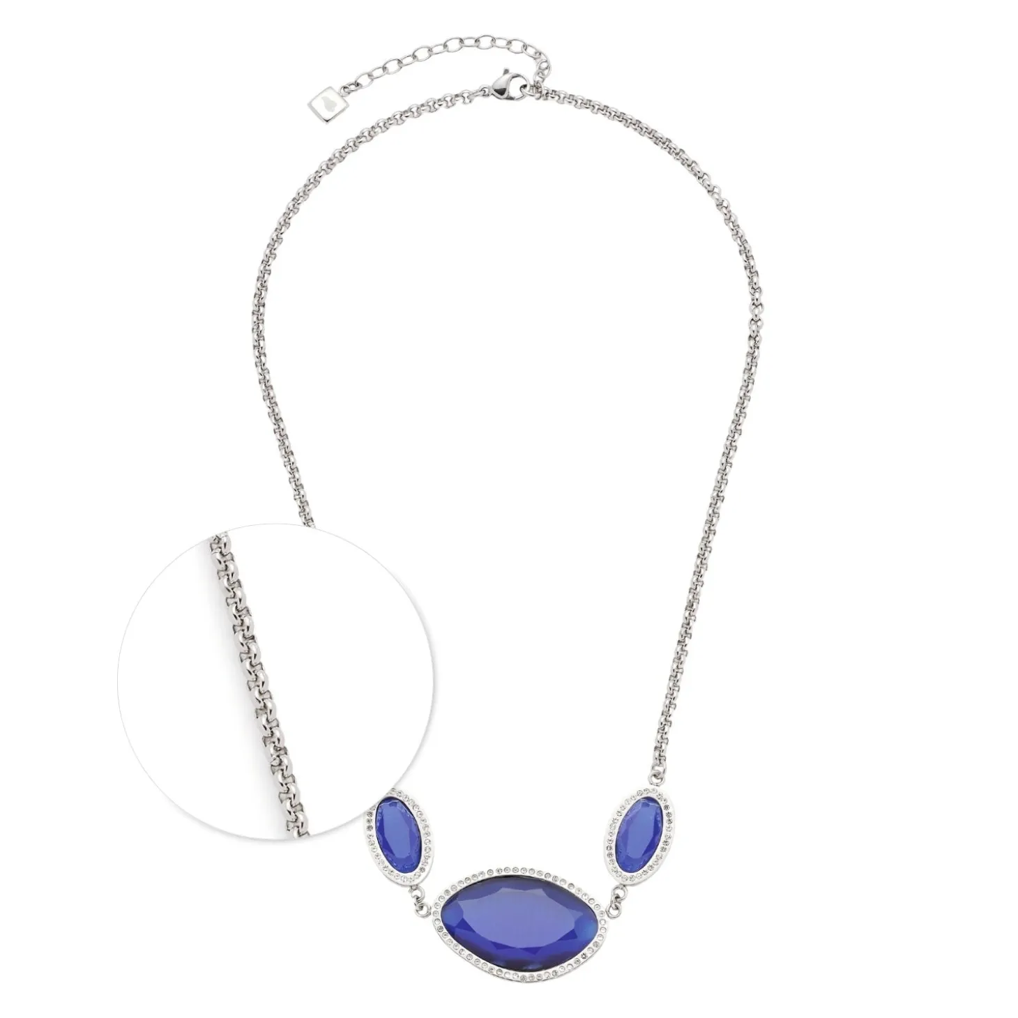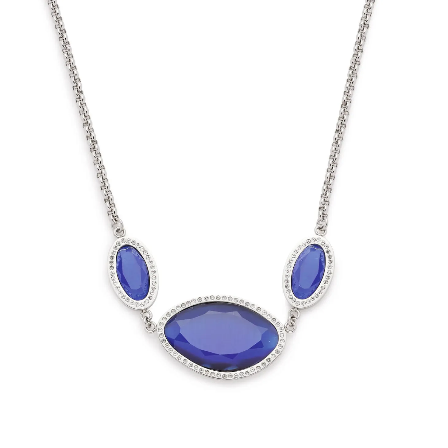 Ob für die Oper, eine Gala oder den Theaterbesuch diese Halskette ist für besondere Anlässe reserviert. Das Herzstück des Colliers bilden die nachtblauen, facettierten Cat’s Eye-Steine, welche von funkelnden Schliffkristallen eingerahmt, an einen Sternenhimmel erinnern. Besonders der organisch geformte Solitär entfaltet eine einzigartige Präsenz.
