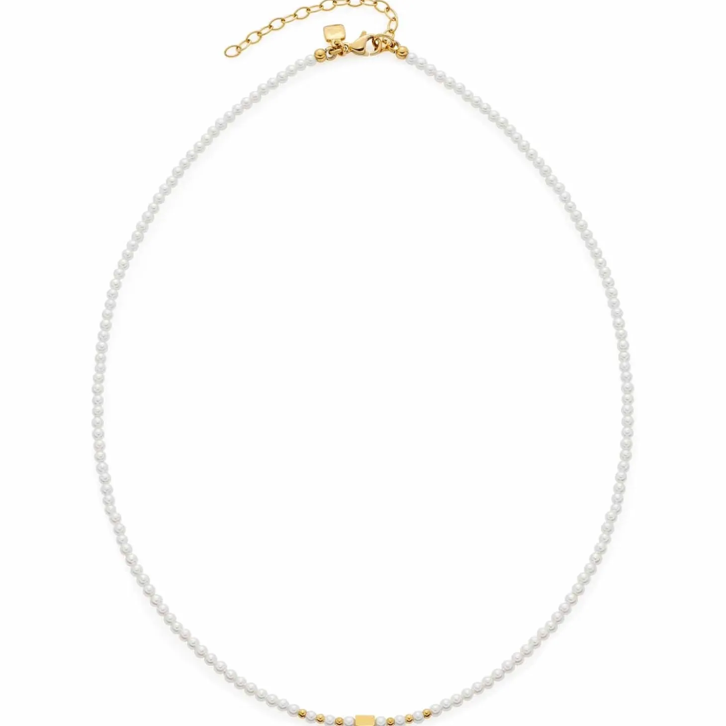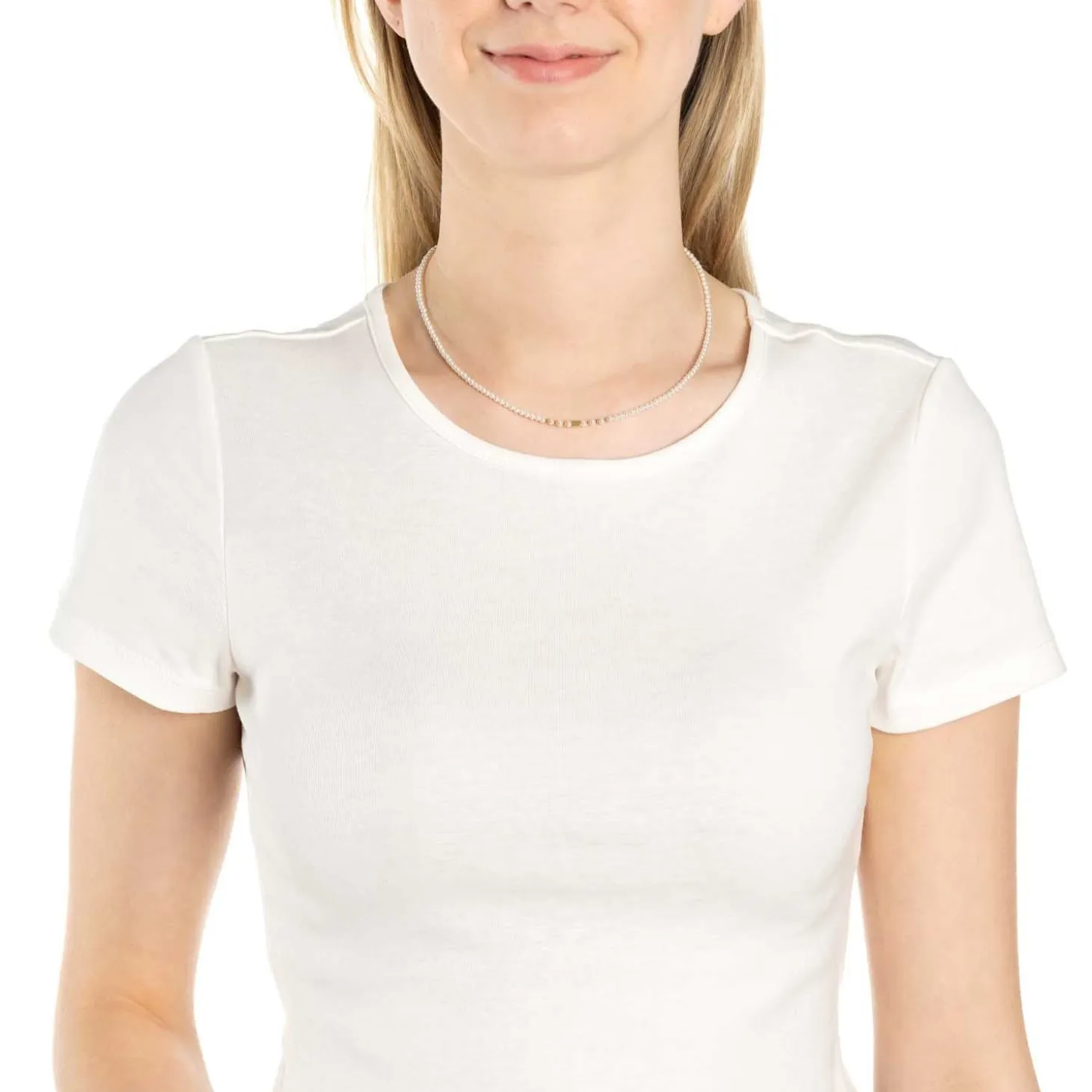 Perlen waren und sind nach wie vor Everybody’s Darling. Ihre zeitlose Eleganz überdauert einfach jeden Modetrend und gefällt von Saison zu Saison immer wieder. So wie dieses kurze Collier aus kleinen Imitationsperlen und winzigen Edelstahl-Elementen in runder Form. Auch diese Perlenkette wird ihren Charme garantiert niemals verlieren.