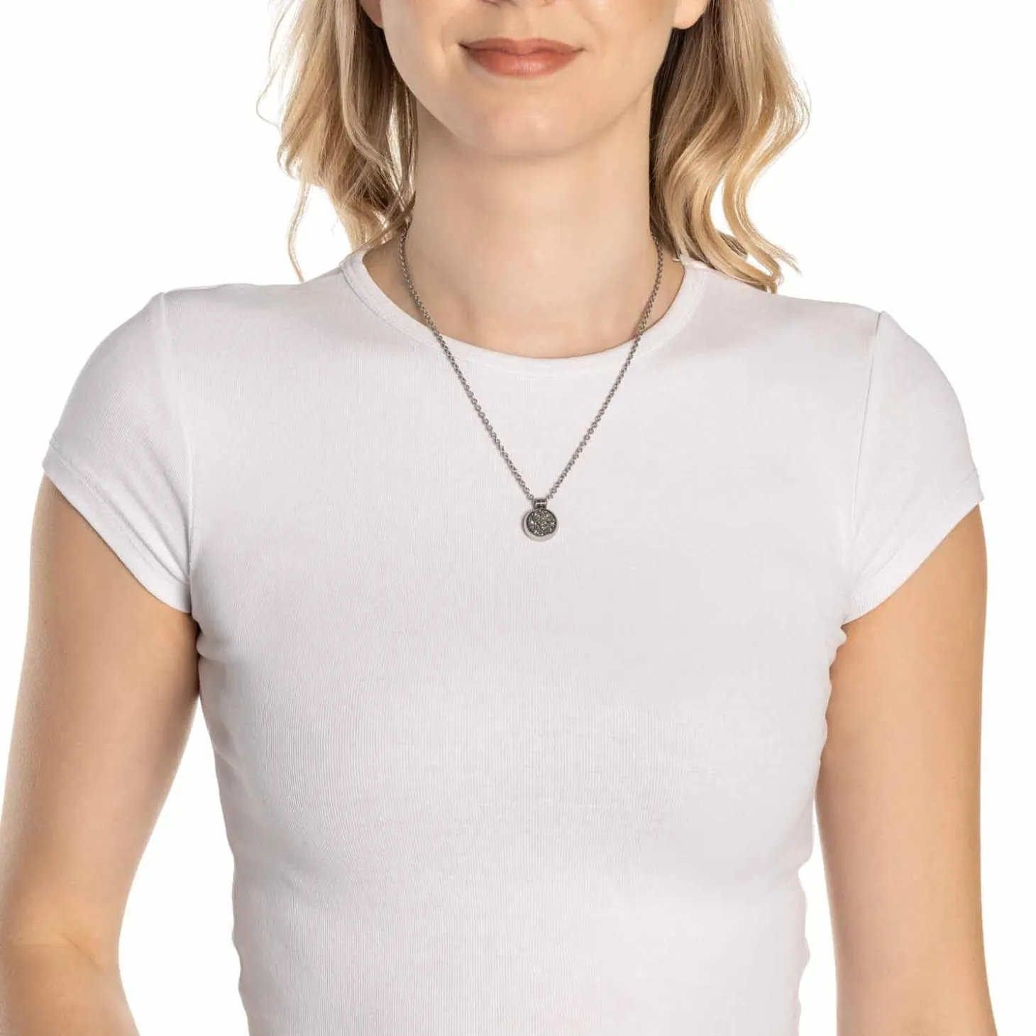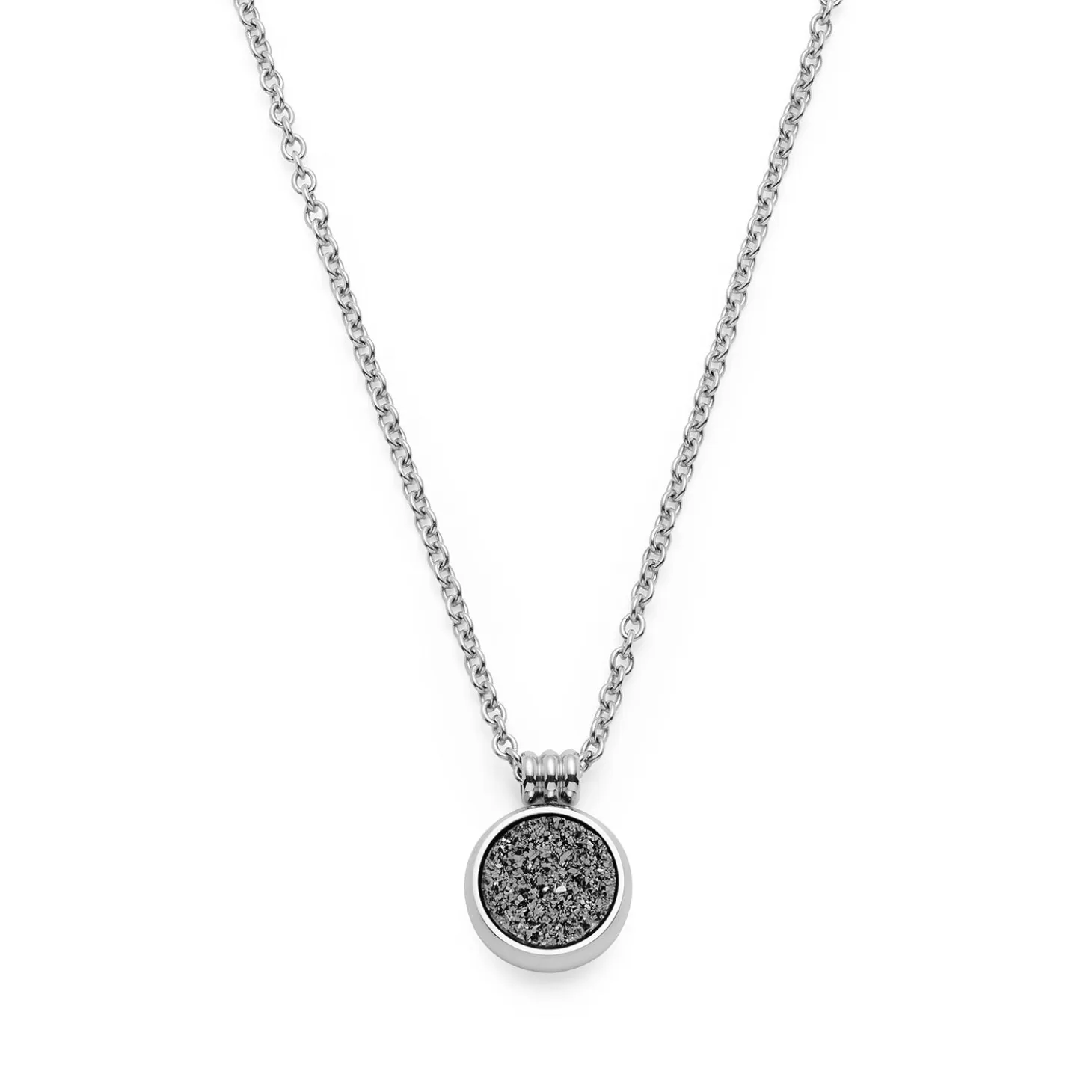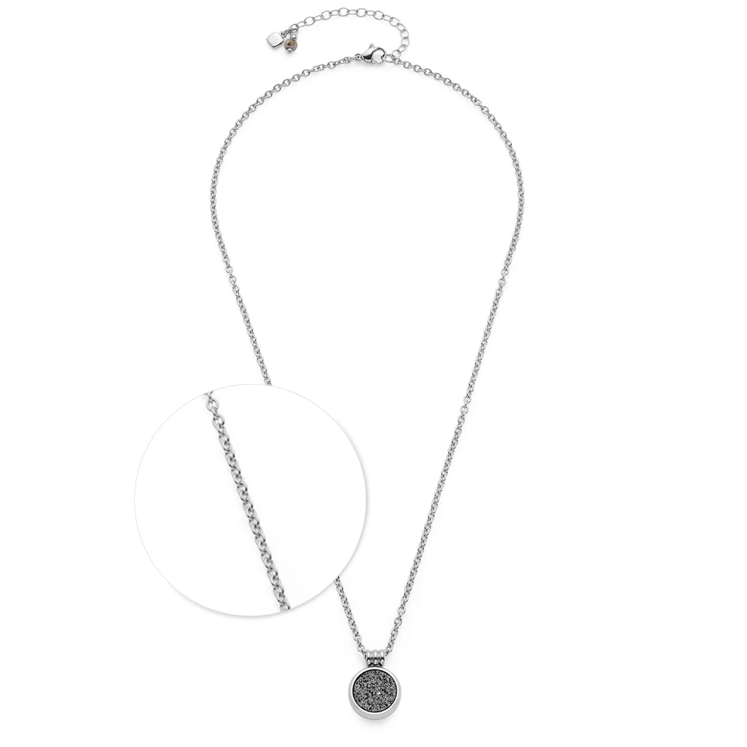 Die Halskette ODELLE verbindet die natürliche Schönheit von Achat mit moderner Eleganz. An der kurzen Weitankerkette hängt ein weich geformter, runder Anhänger, dessen kristalline Oberfläche durch eine Ionenplattierung geheimnisvoll funkelt. Die dreiteilige Aufhängung verleiht dem Design zusätzliche Raffinesse. Ob in schlichter Edelstahl-Optik oder in warmer Goldvariante – diese Kette ist ein stilvoller Blickfang, der sowohl im Alltag als auch zur festlichen Garderobe glänzt. Dank Karabinerverschluss mit Verlängerungskette lässt sich die Länge flexibel anpassen.