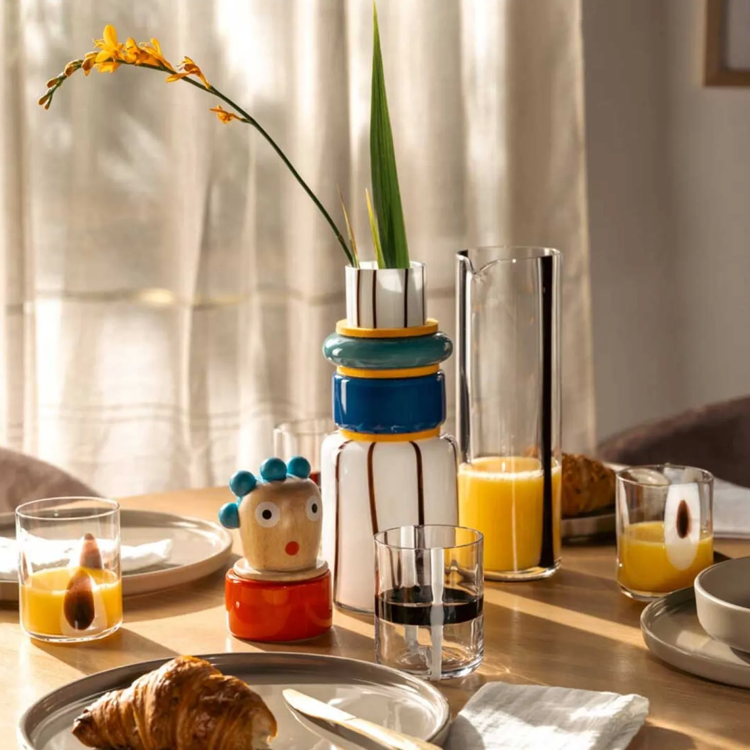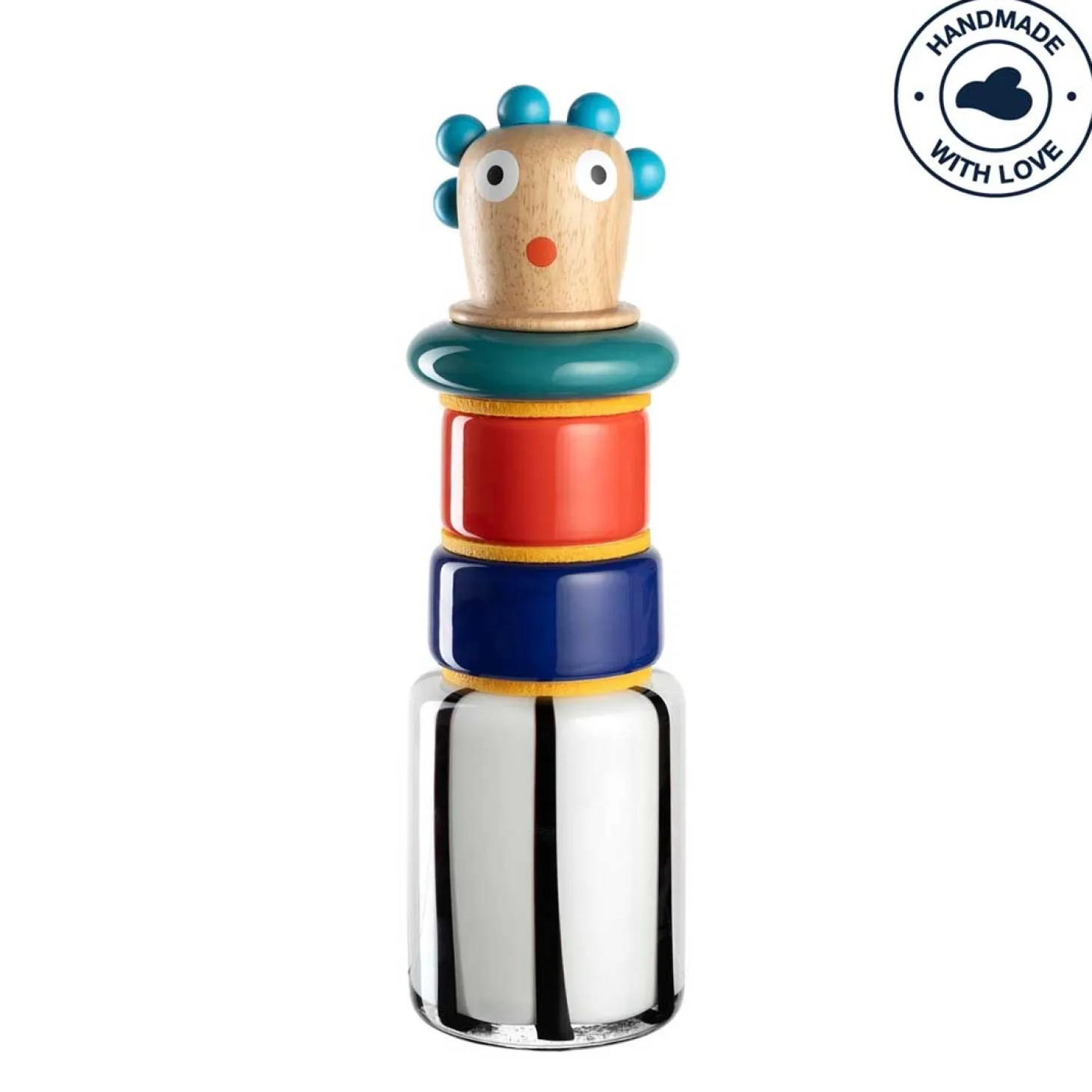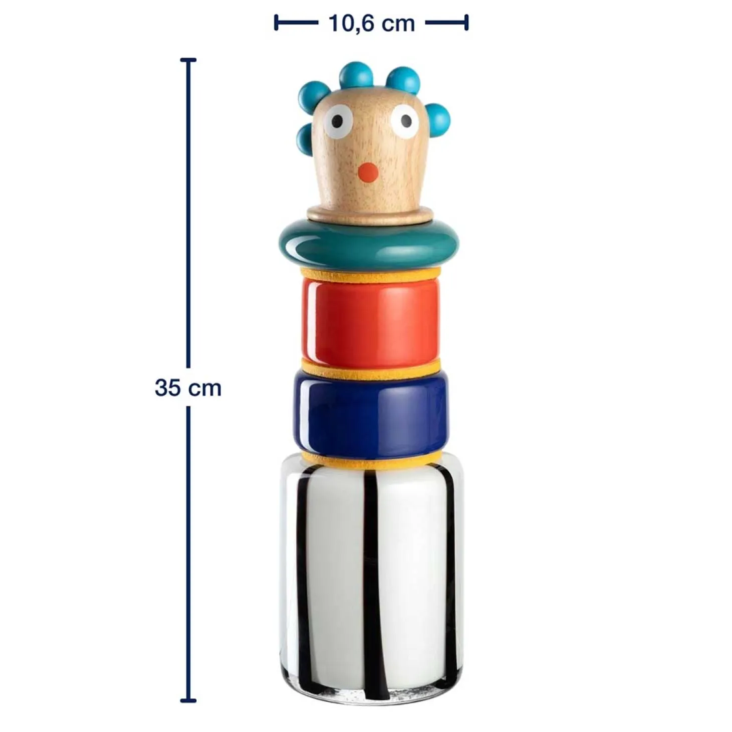 „Entdecke jetzt unsere einzigartige Objektvase Concetta aus der exklusiven BUONI AMICI Kollektion. Diese Objektvase ist mehr als nur ein Behälter für Blumen – sie ist ein wahres Designobjekt. Mit ihren kunstvoll gestalteten Keramikringen und dem detailverliebten Holzkopf strahlt Concetta eine Aura von Hochwertigkeit und Exklusivität aus. Ihre Farbpalette ist so lebhaft und bunt wie dein italienischer Charakter. Diese Vase ist das perfekte Accessoire, um jedem Raum einen Hauch von Raffinesse und Kreativität zu verleihen. Und das Beste daran: Es gibt insgesamt 4 verschiedene Charaktere in dieser Kollektion, sodass du die passende Vase für deinen persönlichen Stil auswählen kannst. Tauche ein in die Welt der BUONI AMICI und lass „“Concetta““ dein Zuhause erstrahlen. „