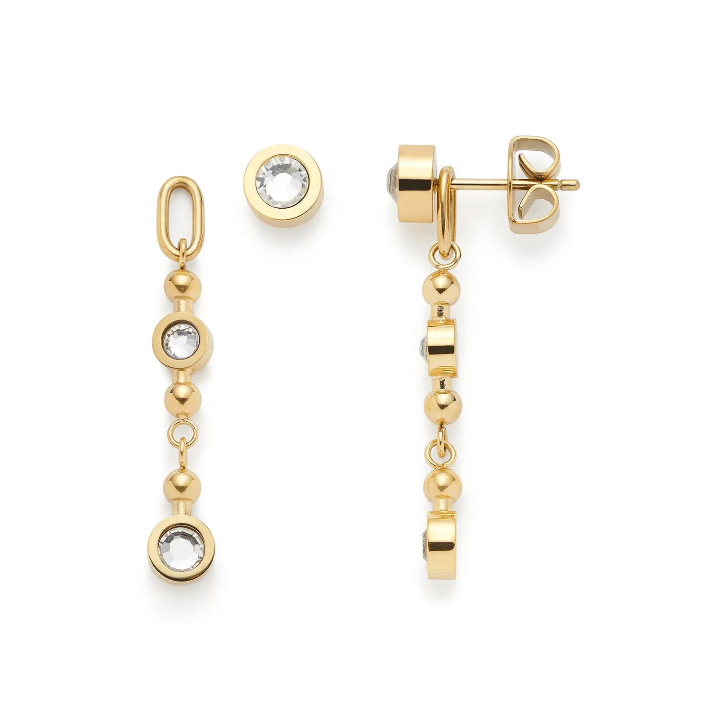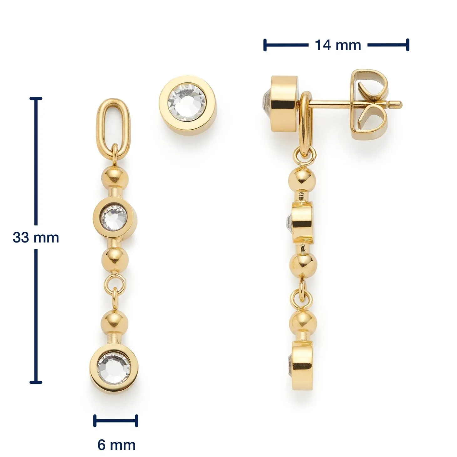 Entdecke die Vielseitigkeit dieser Ohrstecker! Trage sie klassisch mit einem funkelnden facettierten Stein oder verwandle sie im Handumdrehen in einen trendigen, langen Ohrring. Dafür sorgt eine raffinierte Verlängerung, die einfach auf den Stift geschoben wird. Sie besteht aus edlen Goldkugeln und einer Reihe kleinerer, facettierter Steine, die harmonisch aufeinander abgestimmt sind. Ob dezent oder ausdrucksstark – du entscheidest, wie du dein Outfit perfektionierst. Ein Schmuckstück, das sich ganz nach deinem Stil richtet.