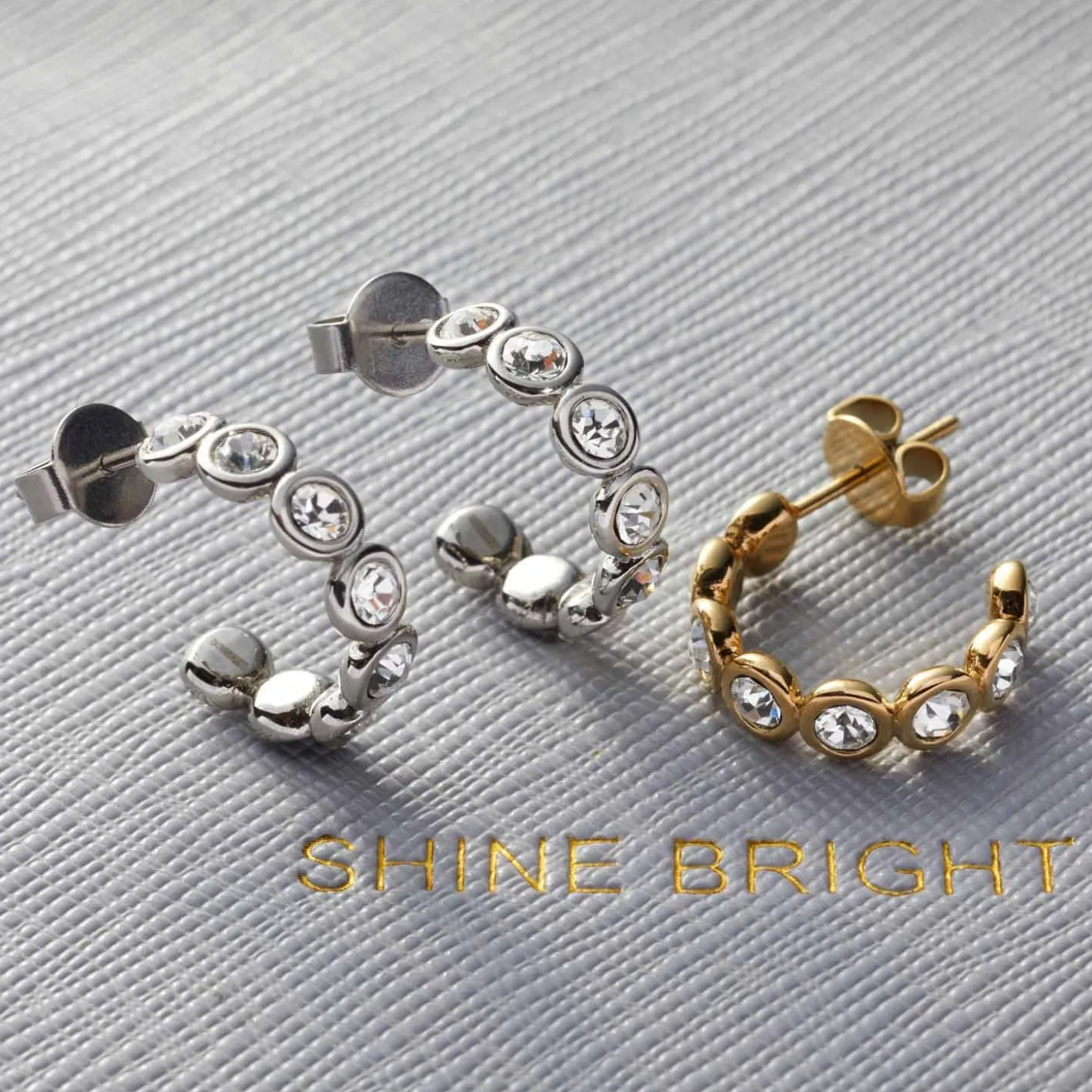 Klein, aber fein – getreu diesem Motto präsentieren sich die Ohrstecker. Ähnlich wie bei dem Armband reihen sich bei der Steck-Creole in Memoire-Optik auch weiße Zirkonia Steine aneinander. Mit ihrer zart funkelnden Optik lassen sich die Ohrstecker mit diversen Stilrichtungen kombinieren – von elegant bis klassisch.