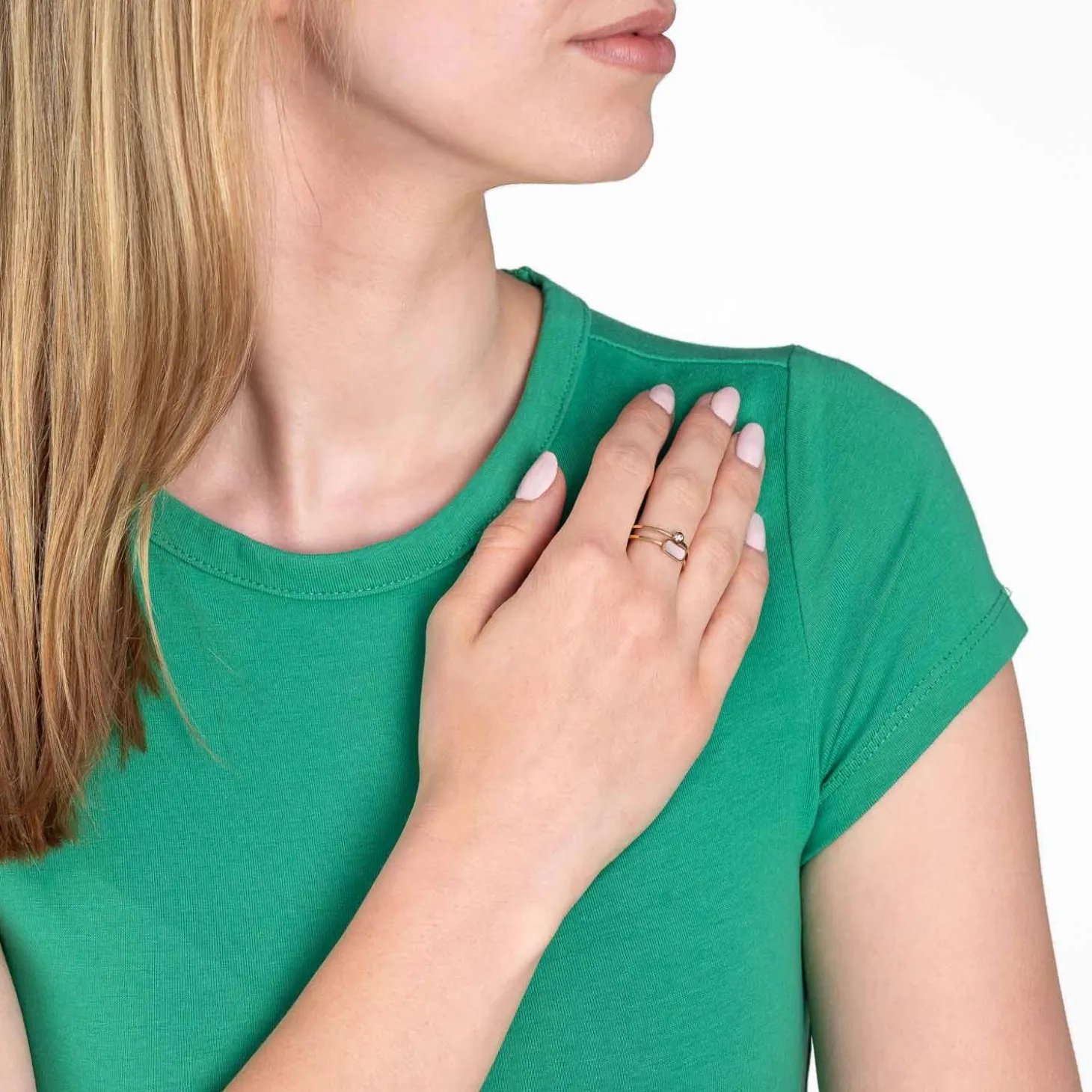 Dieser golden ionenplattierte Edelstahl-Ring zeugt von Trendgespür und Liebe zum Detail. Das raffinierte Design besteht aus zwei zarten Ringschienen, die parall zu einander verlaufen und sowohl einen runden Glaskristall mit funkelndem Facettenschliff als auch ein Perlmutt-Rechteck als elegante Krönung diesem Schmuckstück zum Besten geben.