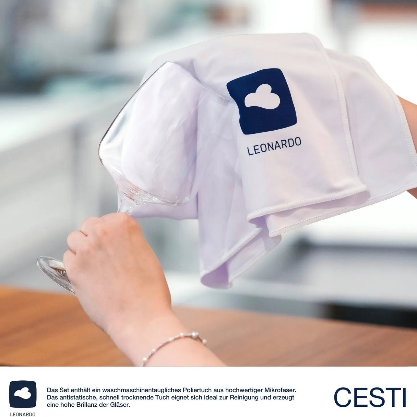 Du suchst nach dem perfekten Rotweinglas für den unkomplizierten Weingenuss im Alltag? Unser Rotweinglas mit niedrigerem Stiel ist genau das, was du brauchst! Mit seinem modernen Design liegt es voll im Trend und verleiht deinem Tisch einen Hauch von mediterranem Flair, ganz im Stil italienischer Genussmomente. Dank Teqton ist dieses Glas spülmaschinenfest und somit ideal für den ungezwungenen Genuss im Alltag. Gönne dir ungezwungenen Weingenuss und erlebe den mediterranen Lifestyle in vollen Zügen. Mit unserem Rotweinglas CESTI wird jeder Schluck zu einem kleinen Urlaubsmoment. Leicht, lecker, unkompliziert – so sollte Weingenuss sein. Gönn dir das Beste für deine täglichen Genussmomente! 6 Rotweingläser und ein LEONARDO Poliertuch enthält dieses Set. Wir schenken deinen Gläsern den perfekten Glanz. Mit unserem Poliertuch reinigst und polierst du Kelchgläser, Trinkgläser und Vasen mühelos auf Hochglanz – ohne Schlieren oder Fusseln. Genieße strahlende Gläser für jeden Anlass!