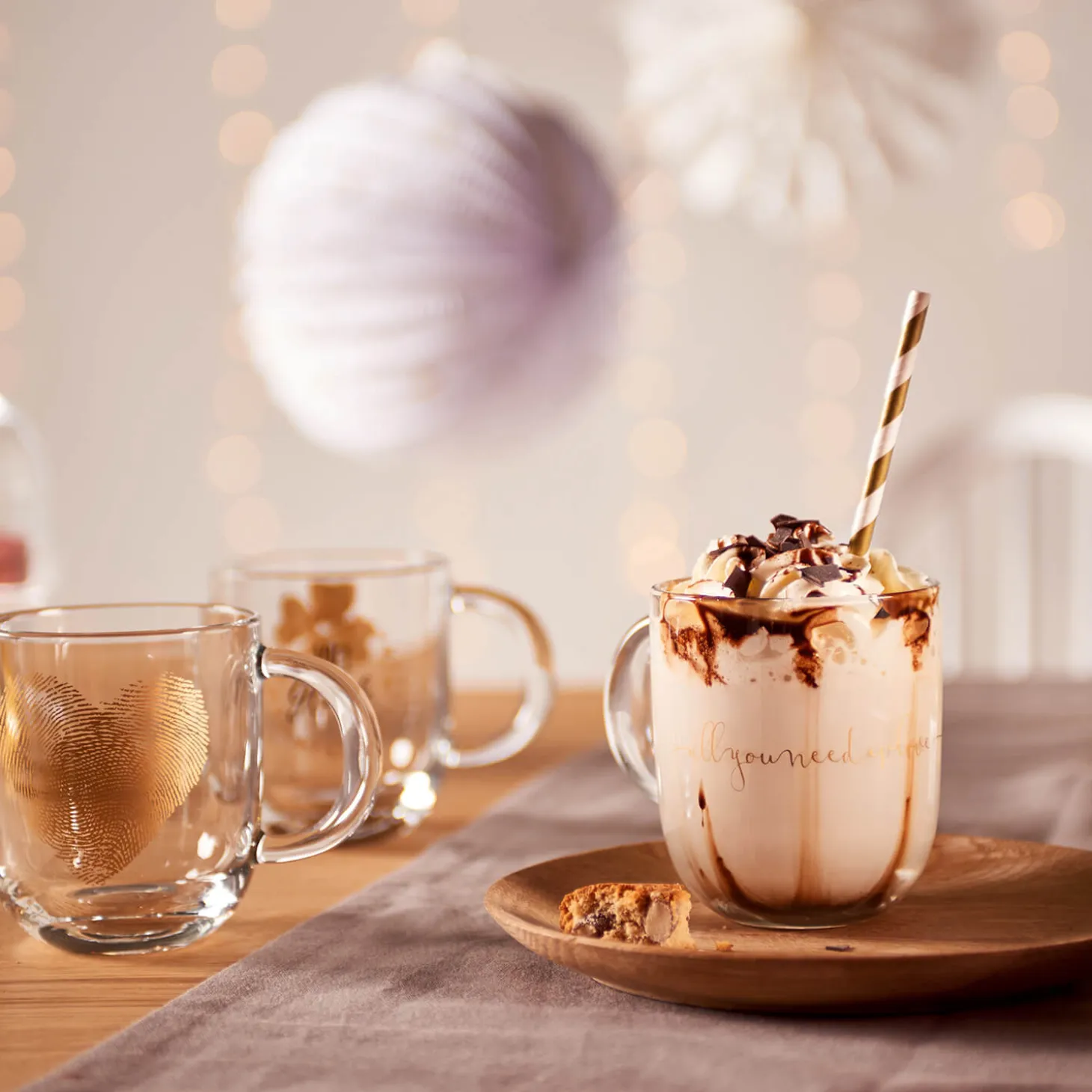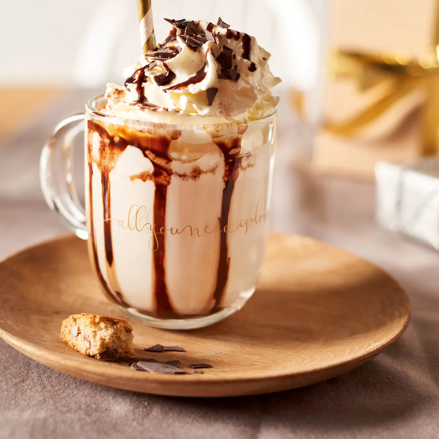 Wenn du auf der Suche nach dem perfekten Geschenk bist, dann hast du es gerade gefunden. Unsere gemütliche Glastasse mit der goldenen Aufschrift „all you need is love“ ist einfach wunderschön. Egal, ob du deinem Lieblingsmenschen eine Freude machen möchtest oder dir selbst eine kleine Auszeit gönnen willst, diese Tasse ist genau das Richtige. Mit ihrem ansprechenden Design und der hochwertigen Verarbeitung wird sie schnell zu deinem Lieblingsgefäß für heißen Kaffee, Tee oder andere Getränke. Stell dir vor, wie du dich an einem kalten Tag in eine warme Decke kuschelst und diese Tasse in der Hand hältst – ein wahrer Genuss! Verschenke Liebe und Gemütlichkeit mit unserer EMOZIONE Glastasse. Sie ist das ideale Geschenk, um jemandem zu zeigen, wie viel er dir bedeutet. Bestelle sie jetzt und verbreite Liebe und Wärme in deinem Leben!