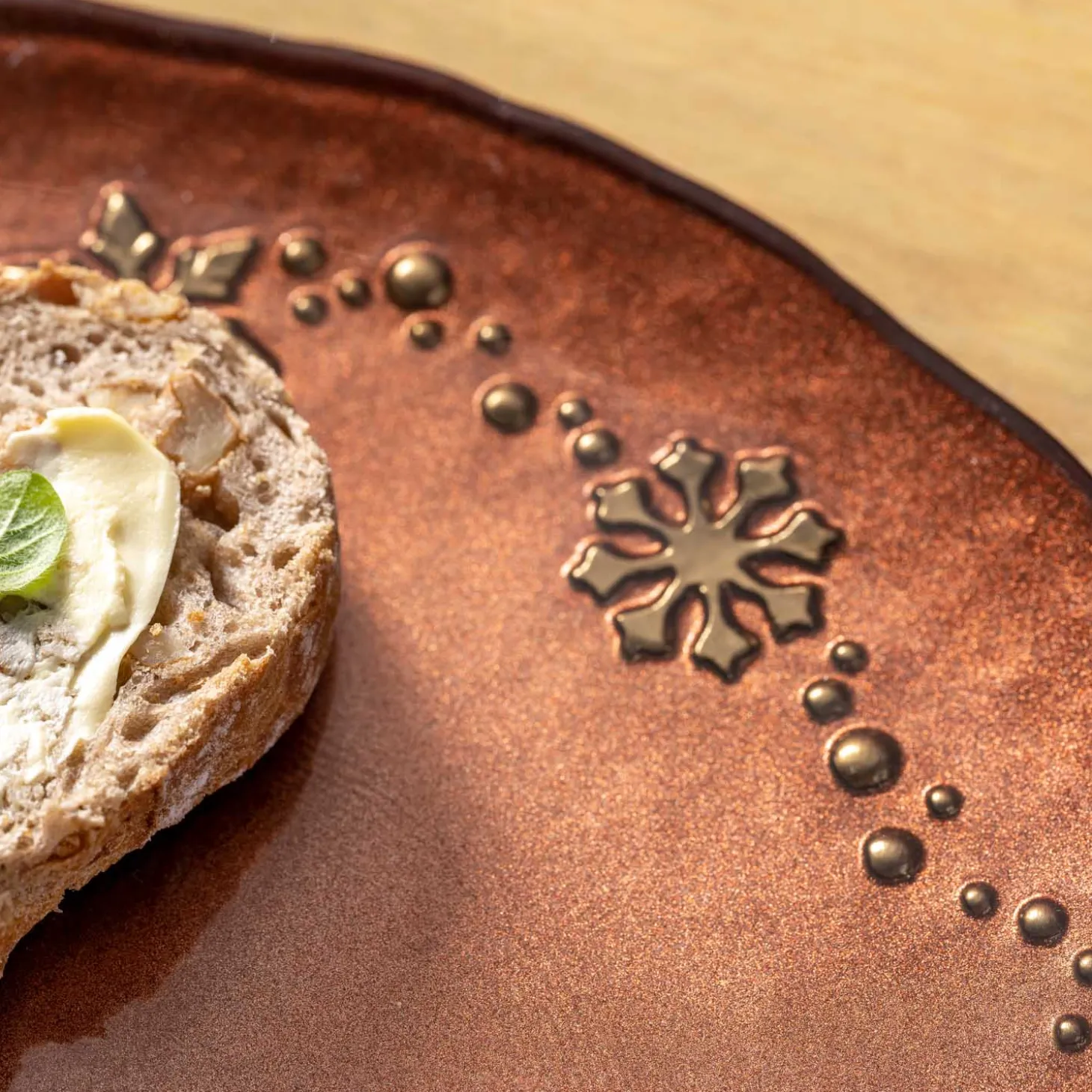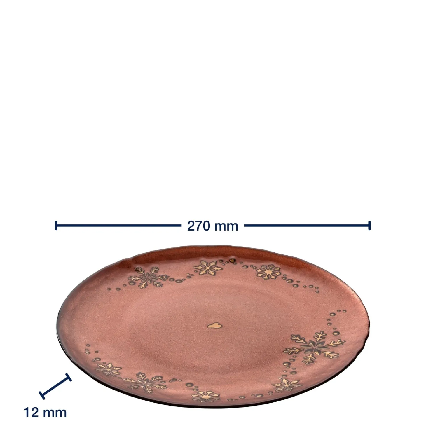 Weihnachten kann kommen! Für die richtige Festtagsstimmung sorgt der handbemalte Teller mit traditionellem Schneeflockendekor in Gold. Vielseitig einsetzbar, macht er sich wunderbar als Servierteller für weihnachtliche Süßigkeiten sowie als klassische Adventsdekoration. Die Schleudertechnik erzeugt besondere optische Effekte und unterstreicht den Unikat-Charakter des handwerklich hergestellten Tellers.