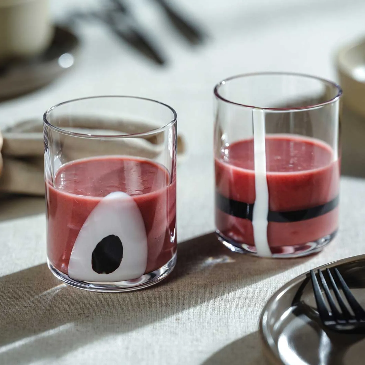 Erlebe das Trinkglas BANDA NERA – ein echtes Highlight auf jedem Tisch. Handgefertigt aus hochwertigem Glas, besticht es durch seine auffälligen weißen und schwarzen Farbstreifen, die es zu einem besonderen Blickfang machen. Die elegante, konische Form sorgt nicht nur für eine angenehme Handhabung, sondern verleiht jedem Getränk einen Hauch von Stil. Egal ob für Wasser, Saft oder Cocktails – mit dem BANDA NERA Glas setzt du ein Statement. Perfekt für stilbewusste Genießer, die auf Qualität und Design Wert legen. Ein Glas, das dein Zuhause auf elegante Weise bereichert.