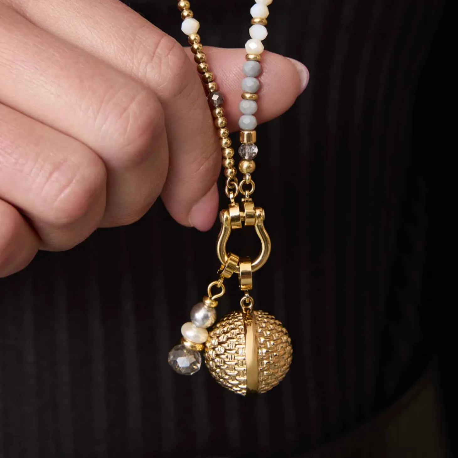 Der Anhänger PINOU ist pure Eleganz im Zeichen des Bold Elegance-Trends. Die polierte, goldene Kugel mit edler Flechtoptik macht diesen mittelgroßen Anhänger zu einem ausdrucksstarken Highlight. Ob als markanter Blickfang an Deiner Kette oder als stilvolle Ergänzung an einem Armband – mit dem Clip Größe M setzt Du klare, moderne Statements.