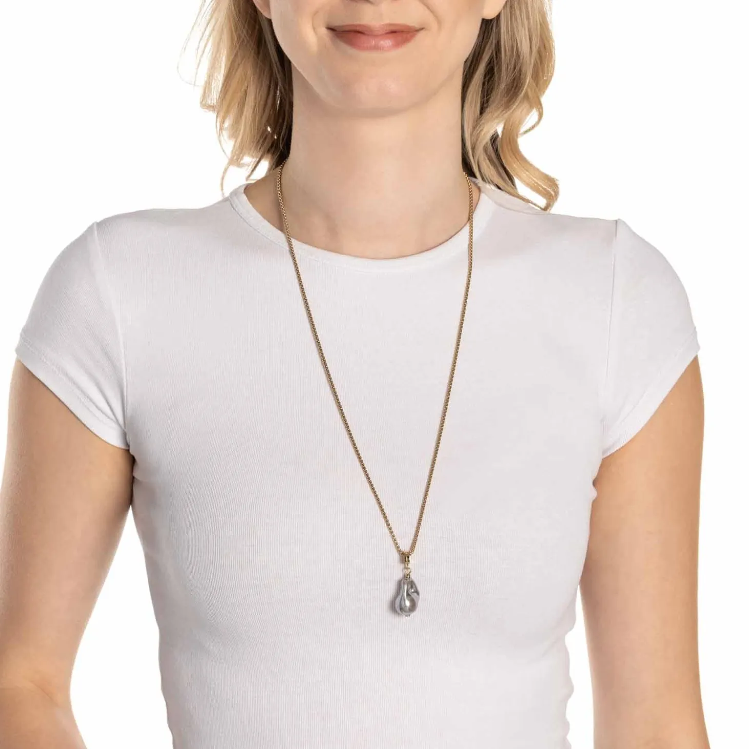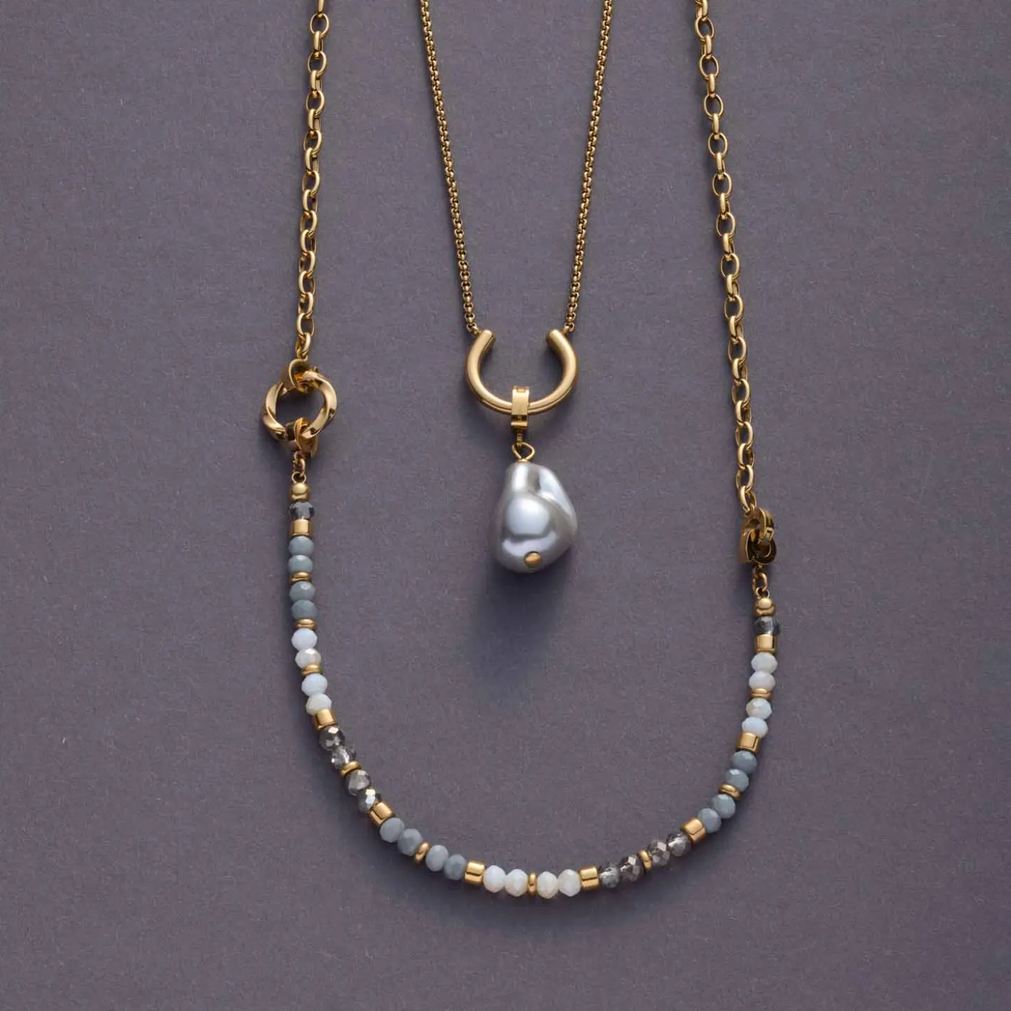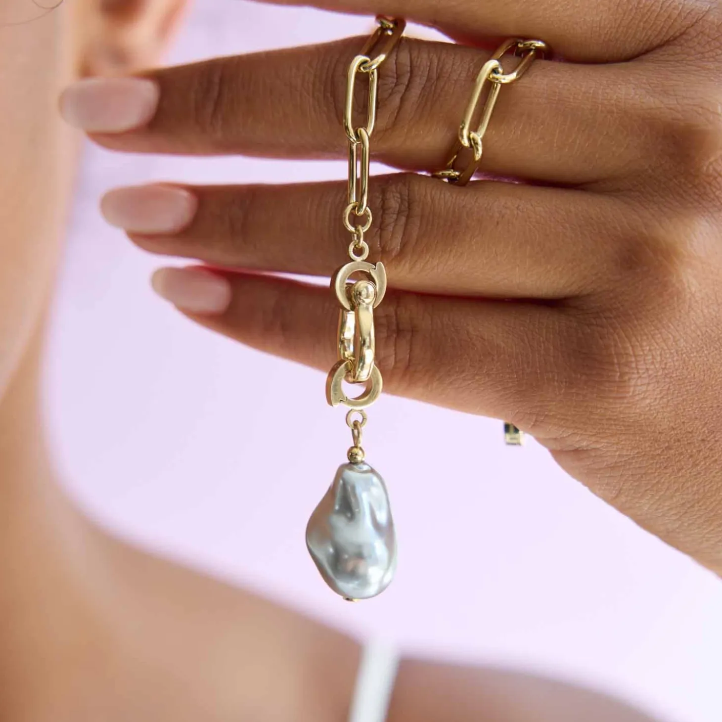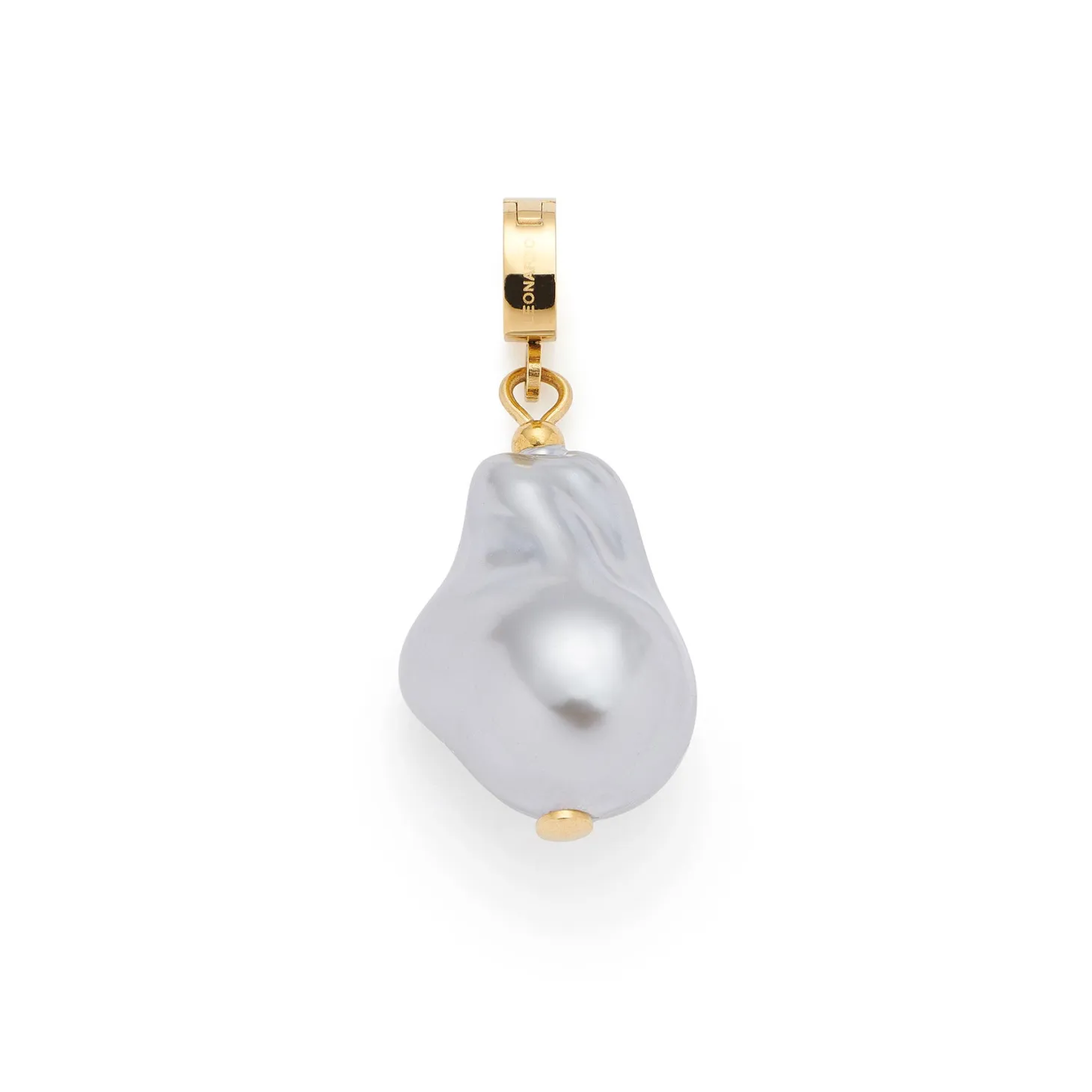 Der Anhänger WILMI besticht durch seine schlichte, natürliche Schönheit. Die graue Imitationsperle wird von einer kleinen goldenen Kugel gekrönt und ergibt so einen dezenten, aber eleganten Anhänger. Mit dem Clip Größe M lässt sich WILMI vielseitig an Ketten oder Armbändern anbringen – perfekt für alle, die Understatement mit Stil lieben.