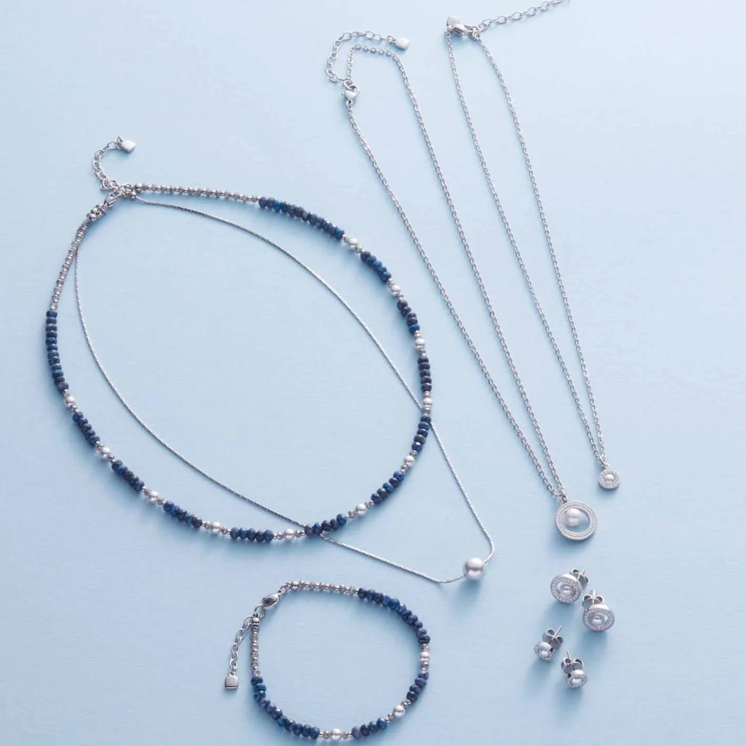Das passende Armand setzt sich wie die Kette AnJANA aus gereihten Sodalith-, Glas- und Imitationsperlen und kleinen Stahlkügelchen zusammen. Mit seiner feinen Optik fügt sich das Armband in zahlreiche Looks stilvoll ein und ist auch ohne passende Kette eine schöne Ergänzung zum Outfit. Dank der Verlängerungskette ist das Armband immer passend und der Karabinerverschluss garantiert ein einfaches Schließen.