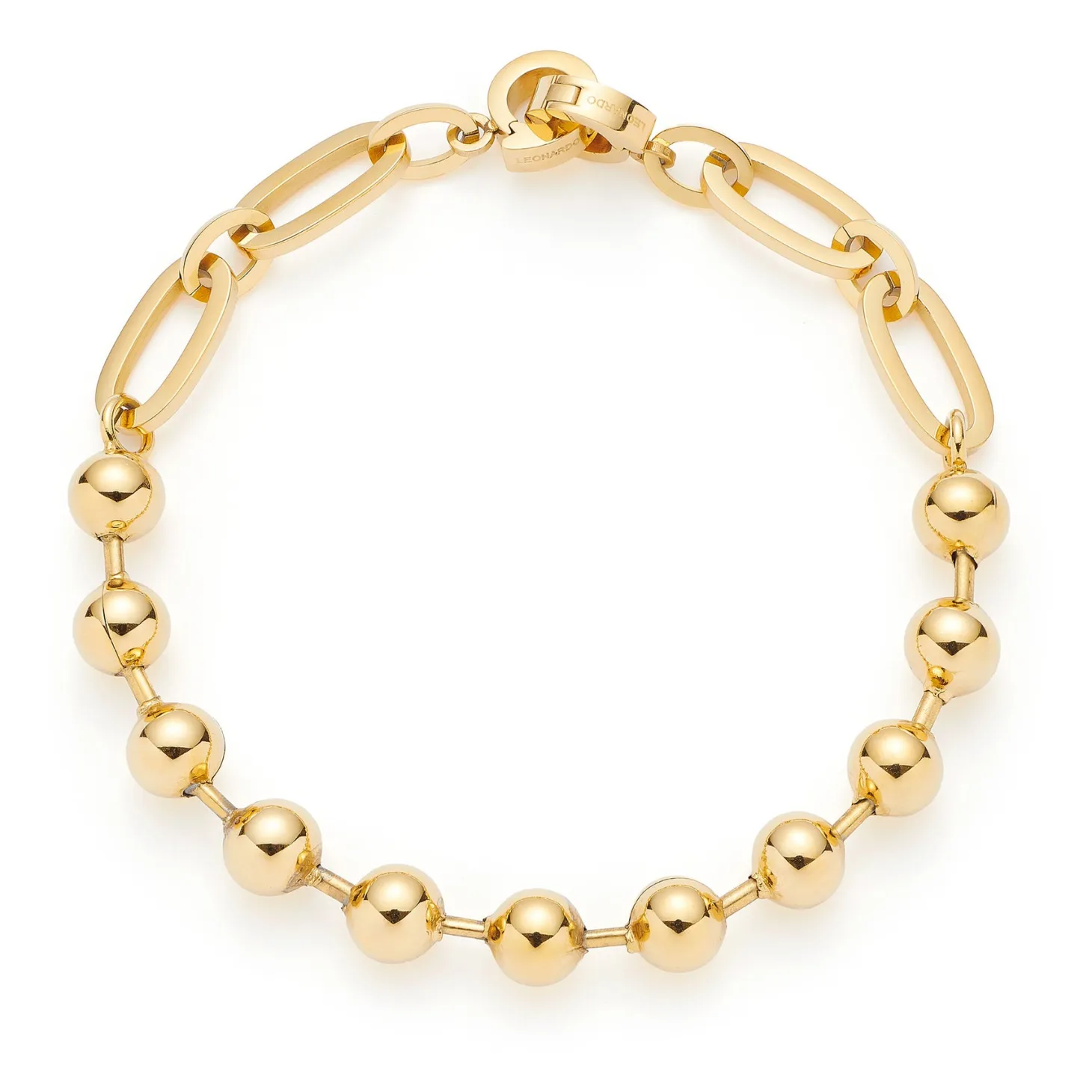 Dieses Armband ist die perfekte Ergänzung zur passenden Kette. Die kräftigen Kugeln mit stilvollen Stegen und die vier ovalen Ringe am Verschluss machen es zu einem vielseitigen Schmuckstück. Mit den Clips in Größe M kannst du kleine Anhänger aus der Leonardo-Kollektion kreativ hinzufügen oder die Kette ganz einfach verlängern. Ein Must-have, das deinen Look raffiniert abrundet – entdecke es jetzt!