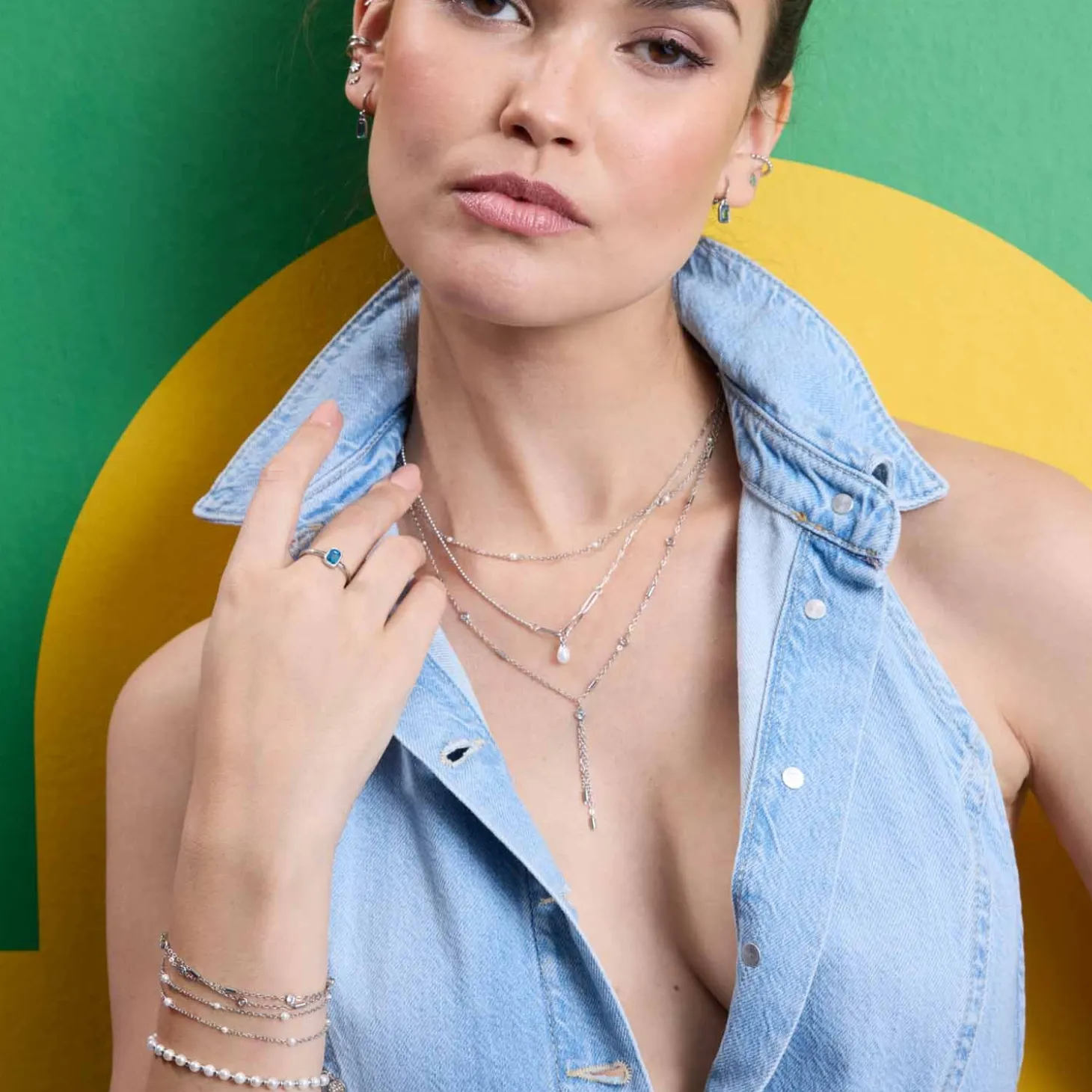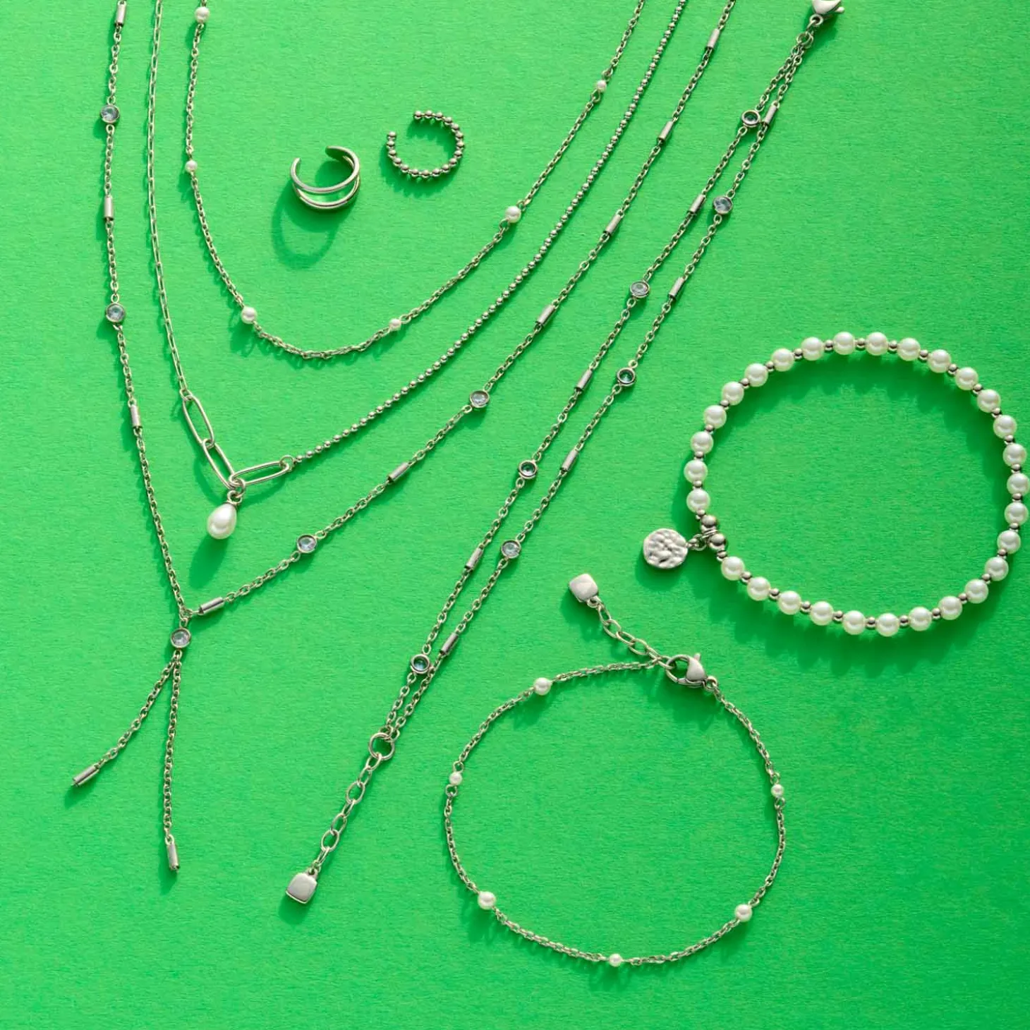 Hol dir das perfekte Gegenstück zu der eleganten Kette mit diesem wunderschönen Armband! Es besteht aus zwei zarten Ankerketten, die sanft gegeneinander versetzt sind und so einen besonderen, dynamischen Effekt erzeugen. In regelmäßigen Abständen setzen sich kleine, runde Metallstäbchen und funkelnde Glassteine in schmaler Fassung ab, die dem Armband einen modernen Charme verleihen. Dieses Armband passt perfekt zu jedem Outfit – sei es im Alltag oder zu besonderen Anlässen.