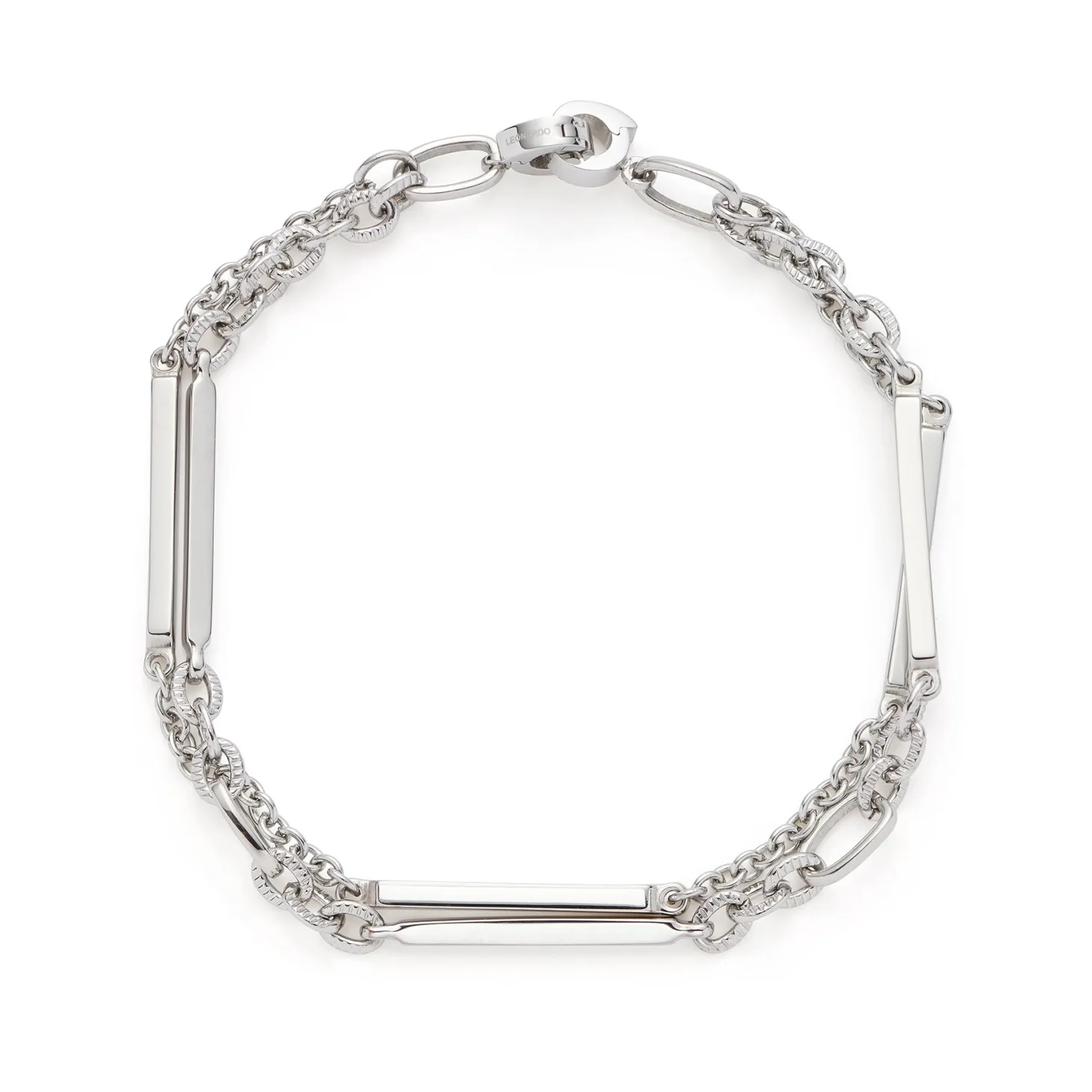Ein stilvolles und perfekt aufeinander abgestimmtes Duo bekommst du mit diesem Armband. Die zweireihige Optik gibt ihm eine schöne Prise Lässigkeit und lässt es besonders cool aussehen. Ähnlich wie die passende Kette mixt auch das Armband ein markantes Band aus unterschiedlichen Elementen und Strukturen mit einer feinen Ankerkette. Zusammen einfach auf den Punkt gebracht. Das Beste: Du kannst das Armband sogar als Erweiterung in die Grace-Kette einclippen.