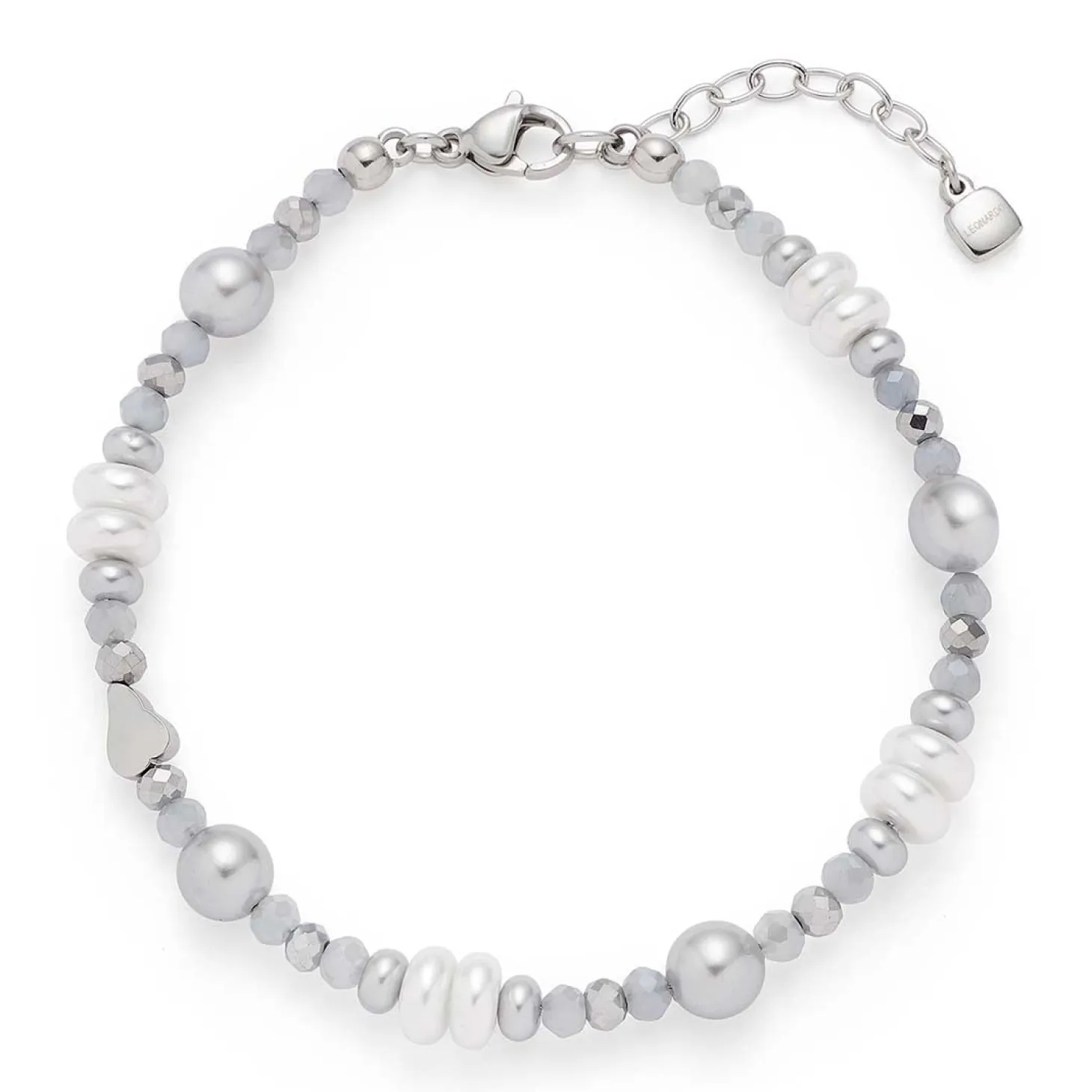 Das Armband KLARA von JEWELS BY LEONARDO ist die perfekte Ergänzung zur gleichnamigen Kette und ein wunderschönes Accessoire für alle, die zarte Farben und schlichte Eleganz lieben. Es besteht aus einer feinen Reihe harmonisch aufeinander abgestimmter Perlen in Weiß, Grau-Blau und metallischem Schimmer. Zwischen den Perlen sorgt die kleine, glänzende LEONARDO Wolke aus poliertem Edelstahl für einen unverwechselbaren Markenakzent. Durch den Karabinerverschluss mit Verlängerungskette lässt sich das Armband individuell anpassen und sitzt stets angenehm am Handgelenk. Ob im Alltag, im Büro oder zu besonderen Anlässen – das Armband KLARA verleiht deinem Look eine moderne, feminine Note. Besonders schön wirkt es in Kombination mit der passenden Kette oder weiteren Schmuckstücken von JEWELS BY LEONARDO.
