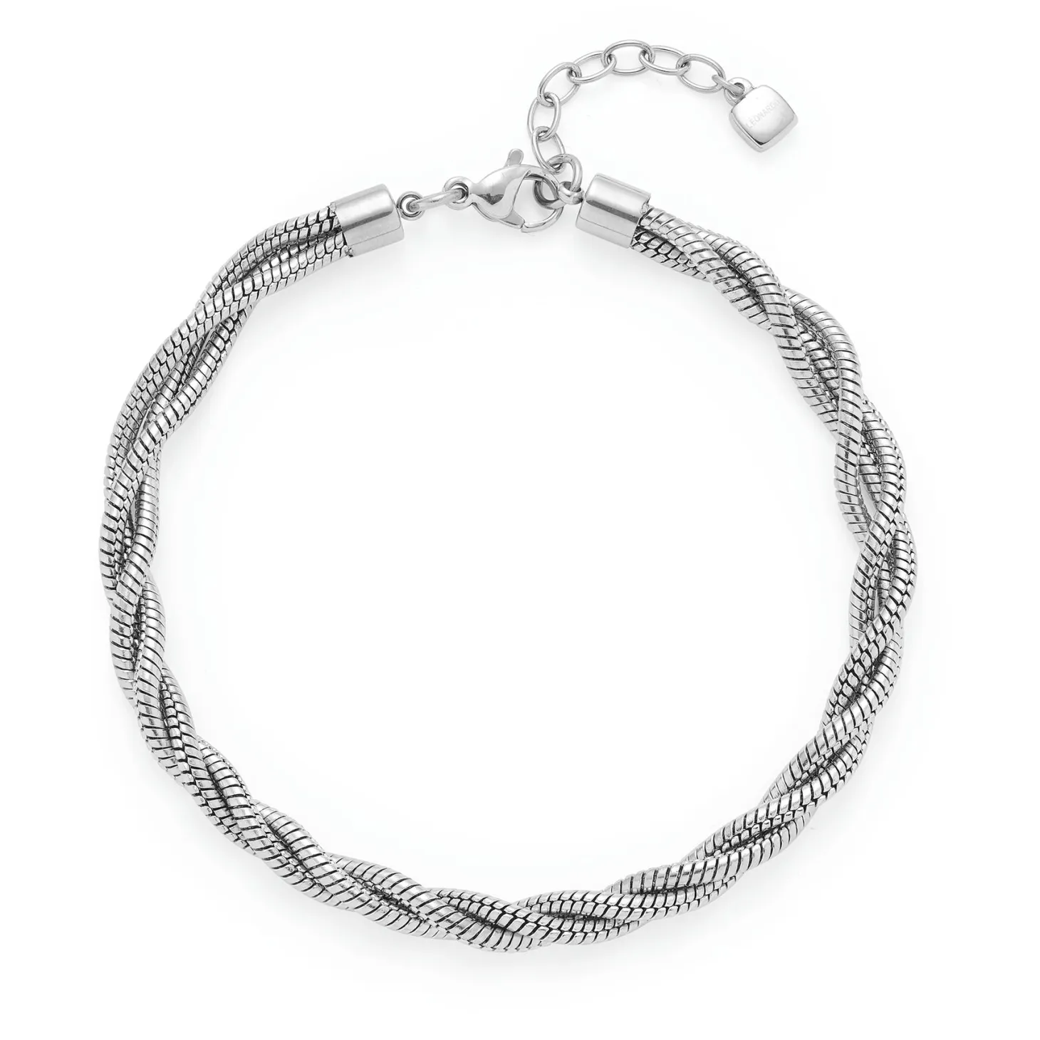 Verleihe deiner Schmucksammlung ein trendiges Update – mit diesem Armband aus poliertem Edelstahl gehst du immer auf Nummer sicher. Es lässt sich mit zahlreichen Outfits kombinieren und passt zu vielen Anlässen – ob am Abend, fürs Office oder die City. Die Kordeloptik aus drei gewundenen Schlangenketten gibt dem Armband eine gewisse Dynamik und kann vor dem Anlegen sogar noch weiter eingedreht werden. Mit dem Karabinerverschluss und der Verlängerungskette passt es sich optimal an. Ein Teil, das schnell zu deinem neuen Liebling wird.