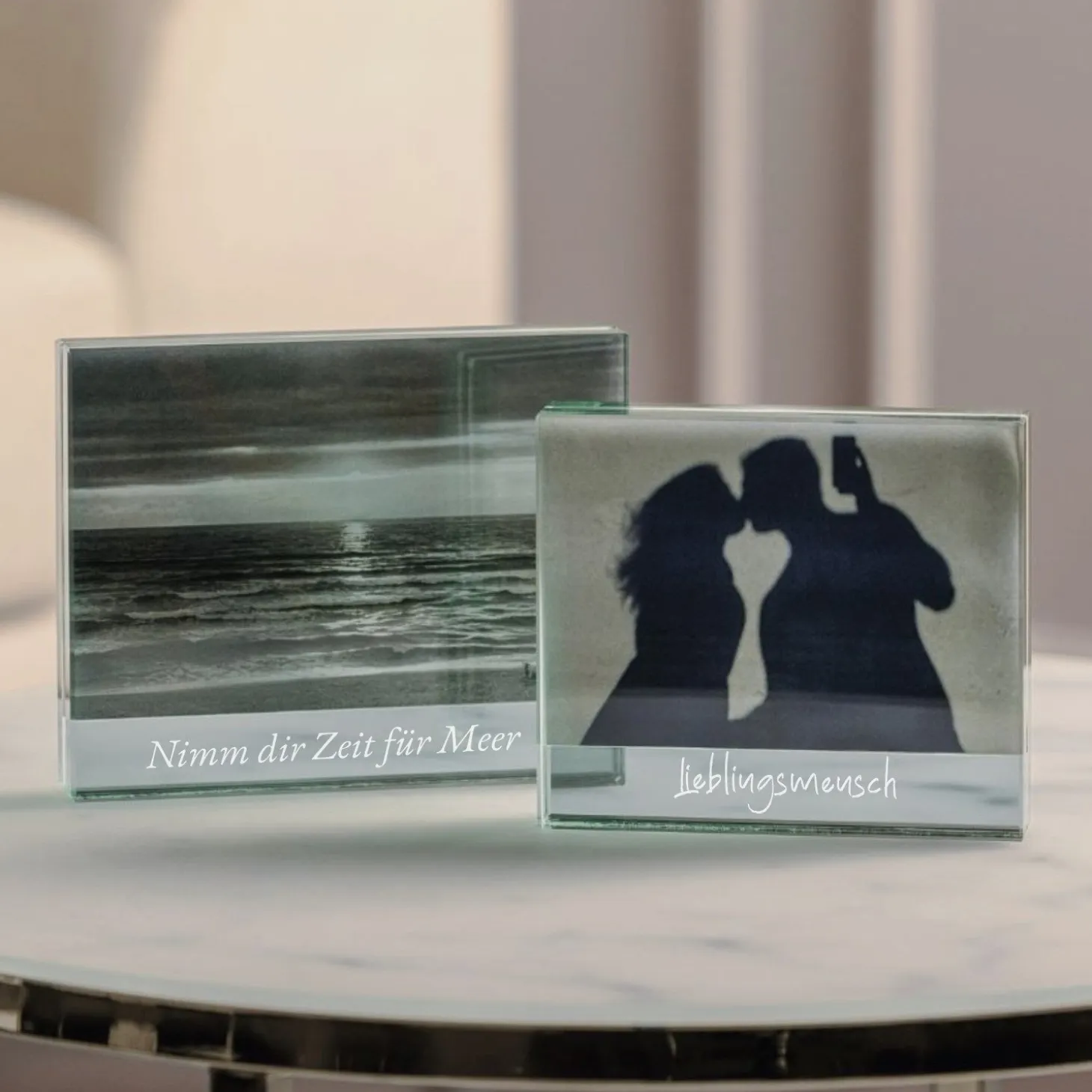 Mach deine Erinnerungen unvergesslich – mit dem Bilderrahmen LINEA aus Glas. Sein stylisches, geradliniges Design passt perfekt in jedes moderne Zuhause. Minimalistisch und smart, setzt er deine Lieblingsmomente elegant in Szene – ob Familienfoto, Urlaubsbild oder besonderer Augenblick. Und das Beste: Du kannst ihn mit einer persönlichen Gravur veredeln. So wird LINEA nicht nur zum Deko-Highlight, sondern auch zu einem ganz individuellen Geschenk. Zeig Stil, zeig Persönlichkeit – mit LINEA.