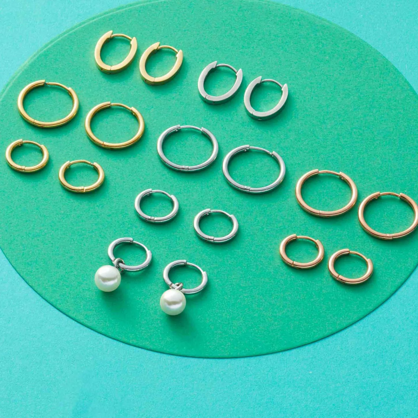 Basics bleiben Trend. Somit erheben sich diese kreisrunden Klappcreolen mit ebenfalls rundem Profil zu echten Must-haves für die aktuelle Saison. Über ihren minimalistischen Charme hinaus eignen sich die beiden Schmuckstücke selbstverständlich auch als schlichte Basis für alle Beauty’s-Anhänger.