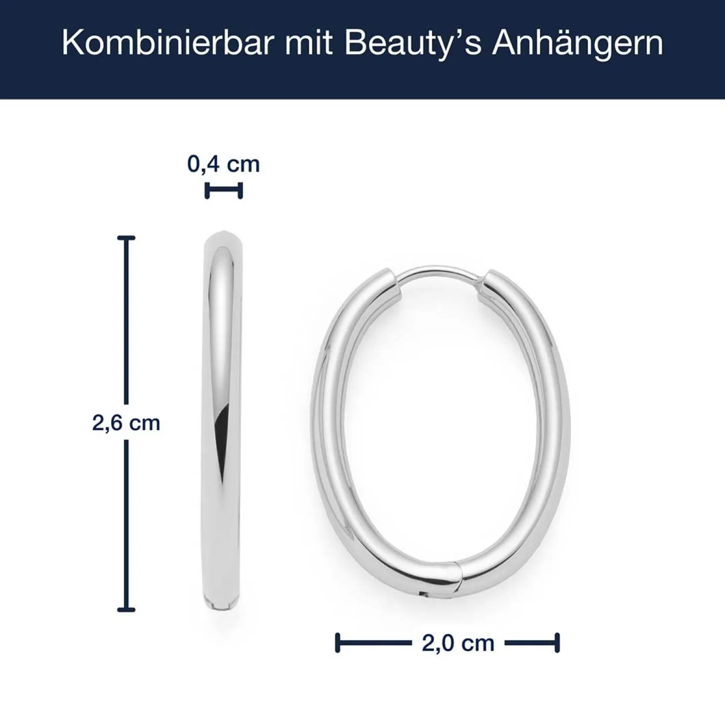 Die Kreole LUZIE vereint moderne Schlichtheit mit stilvoller Raffinesse. Ihr Design aus kühlem Silber macht sie zu einem vielseitigen Allrounder, der sich mühelos in jedes Outfit einfügt. Die ovale Form mit rundem Querschnitt verleiht den Ohrringen eine elegante, weiche Silhouette, während der Klappverschluss für einfaches Anlegen und angenehmen Tragekomfort sorgt. Dank ihres mittleren Formats sind die Kreolen perfekt für den Alltag, können aber auch elegant zu besonderen Anlässen getragen werden. Ihr minimalistisches Design lässt sich hervorragend mit weiteren Schmuckstücken kombinieren und sorgt für einen modernen, femininen Look – Tag für Tag ein stilvoller Begleiter.