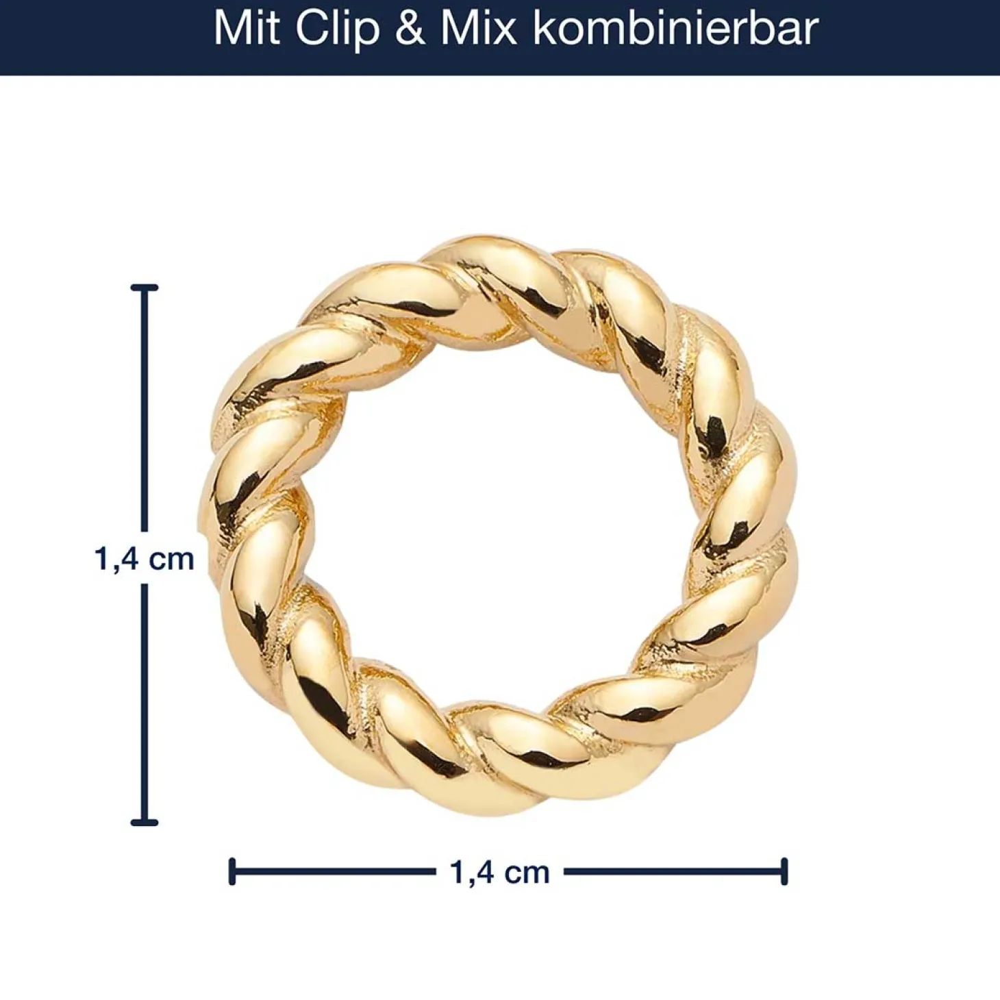 Der ClipRing LIESEL in goldfarbener Ausführung verleiht Deiner Clip & Mix Kette oder Deinem Armband das gewisse Etwas. Die feine Kordel-Optik bringt eine elegante Struktur ins Design und setzt stilvolle Akzente. Kombiniere ihn mit Clips in allen Größen und kreiere Deinen persönlichen Schmuck-Look voller Raffinesse.