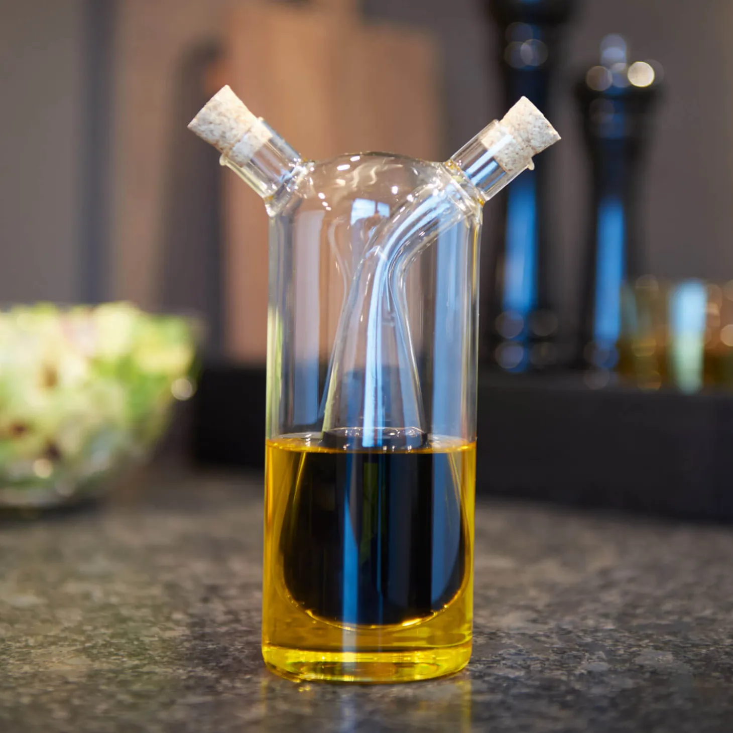 Gestalten Sie Ihren Esstisch ganz nach Ihrem Geschmack: Mit der handgefertigten Essig-/Öl-Flasche aus der Serie CUCINA setzen Sie schöne Akzente und überzeugen mit Charme. Diese zylindrische Essig-/Öl-Flasche ist ein absolutes Must-Have. Beweisen Sie mit dieser einzigartigen, handgefertigten LEONARDO Essig-/Öl-Flasche, dass Sie den Sinn für das Schöne haben. Jedes handgefertigte Produkt ist zudem ein Unikat! Mit einem guten Gespür für das Schöne bringt LEONARDO noch mehr Abwechslung in Ihren Alltag. Das dekorative 2-in-1-Flaschendesign macht Essig und Öl zu einem Highlight auf dem gedeckten Tisch. Zwei Ausgießer, die mit einem kleinen Korken aromatisch verschlossen sind, sorgen für die perfekte Dosierung. Eine schöne Geschenkidee! Für alle, die Wert auf Qualität legen – bestellen Sie am besten direkt und verschönern Sie sich Ihre vier Wände mit dieser hochwertigen Essig-/Öl-Flasche. Besonders überzeugend als Geschenk.