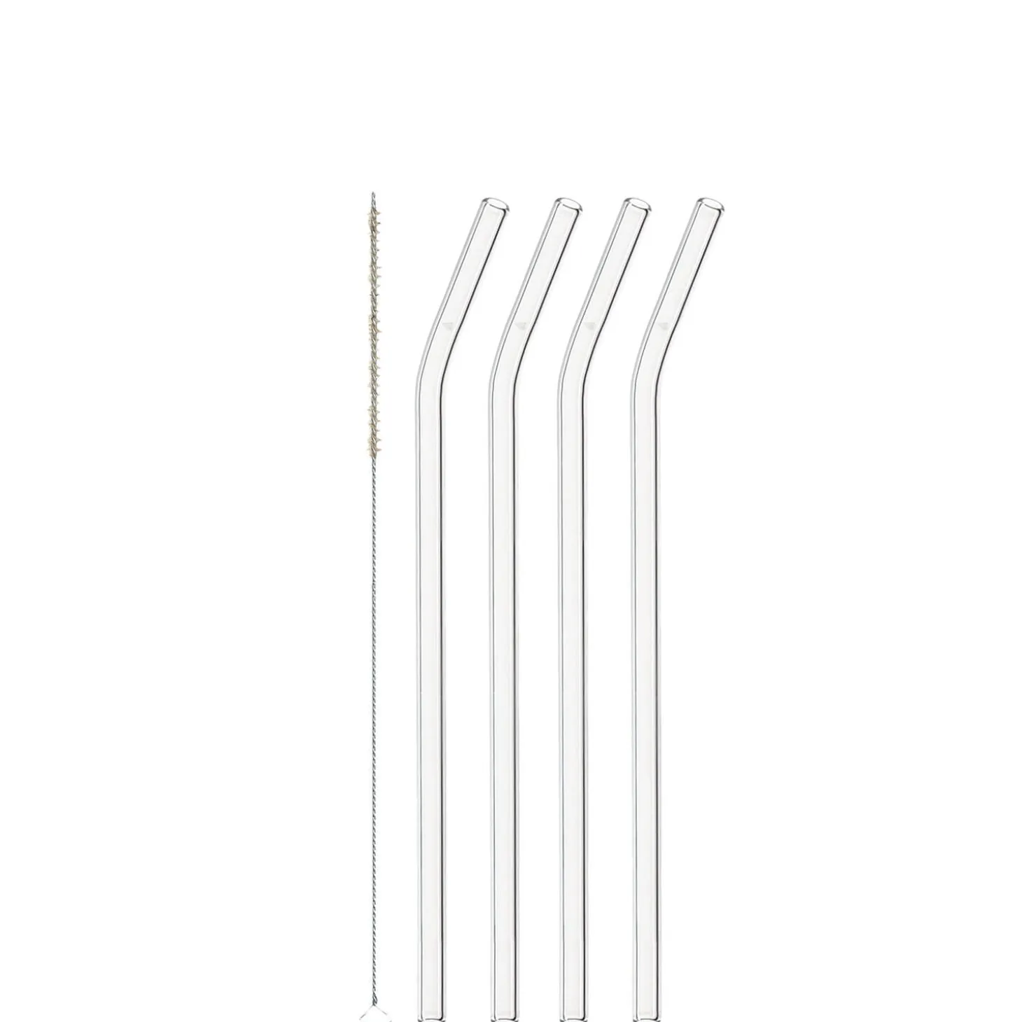 Glastrinkhalme CIAO 23 cm geknickt 4er-Set + Reinigungsbürste