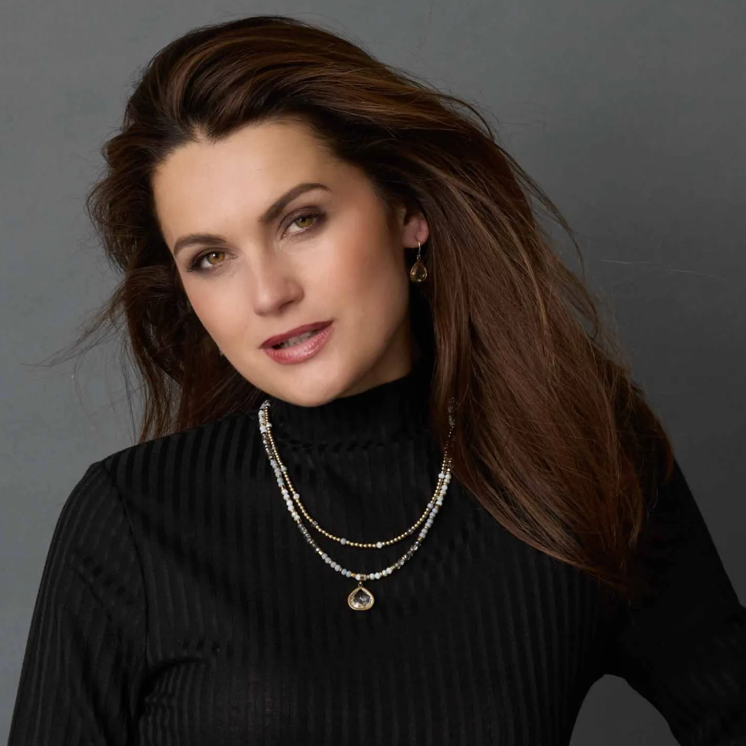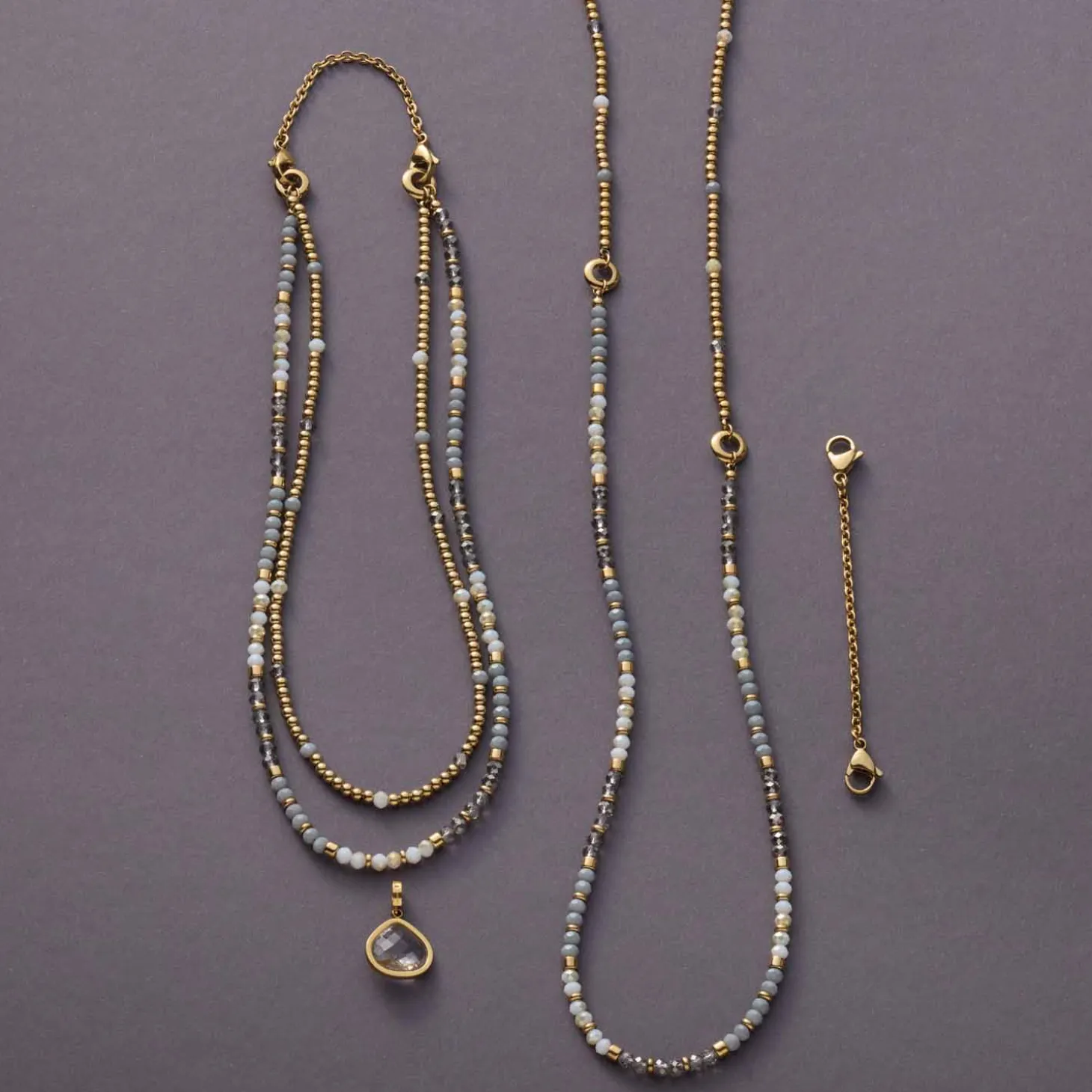 Verleihe Deinem Look eine stilvolle Tiefe mit dem edlen Collier BERNADETTE. Dieses atemberaubende Zierstück kombiniert sanft glänzende Goldkugeln mit schimmernden Glasschliffperlen in gebrochenem Weiß, mattem Grau und Rauchglas-Optik – ein Farbspiel, das durch Eleganz und Modernität besticht. Du kannst diesen Halsschmuck sowohl lang als auch doppelt tragen, indem Du ihn mit einem Adapter variierst – so passt er perfekt zu Deinem Outfit und Deiner Stimmung. Das Besondere: Die beiden kräftigen GoldRinge setzen ein markantes Statement und bieten gleichzeitig die Möglichkeit, passende Clip & Mix Anhänger einzuhängen. In Kombination mit dem passenden Armband BERNADETTE entsteht ein harmonisches Set, das Deinen persönlichen Stil unterstreicht.