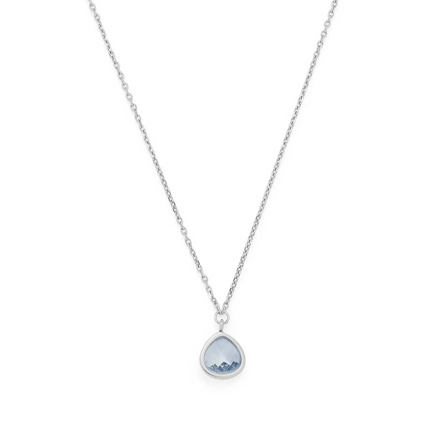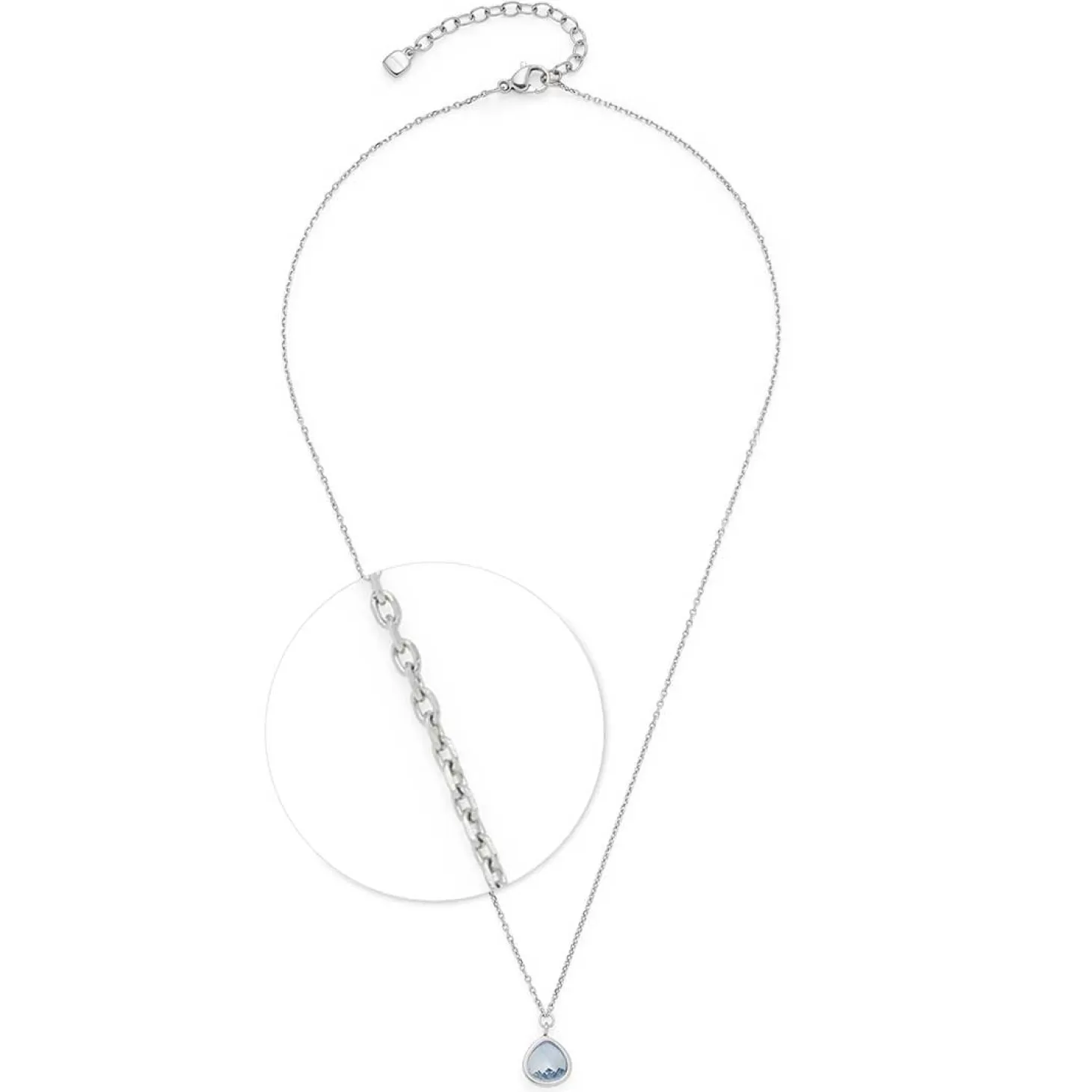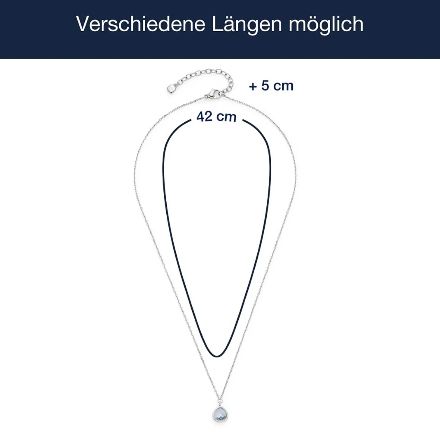Die Halskette INDRA vereint moderne Schlichtheit mit sommerlicher Frische. Die kurze, feine Ankerkette aus poliertem Edelstahl trägt einen blassblauen, facettierten Glasstein in Form eines rundlichen Dreiecks. Durch seine transparente, lichtreflektierende Oberfläche entsteht ein sanfter Glanz, der jeden Look aufwertet. Der schmale Rahmen unterstreicht das minimalistische Design und bringt den Stein dezent zur Geltung. Dank Karabinerverschluss mit Verlängerungskette lässt sich die Länge flexibel anpassen – ideal, um die Kette solo zu tragen oder mit weiteren Schmuckstücken zu kombinieren. Die Halskette INDRA ist ein vielseitiger Begleiter für den Alltag und passt perfekt zu sommerlichen Outfits oder als elegantes Geschenk für stilbewusste Schmuckliebhaberinnen.