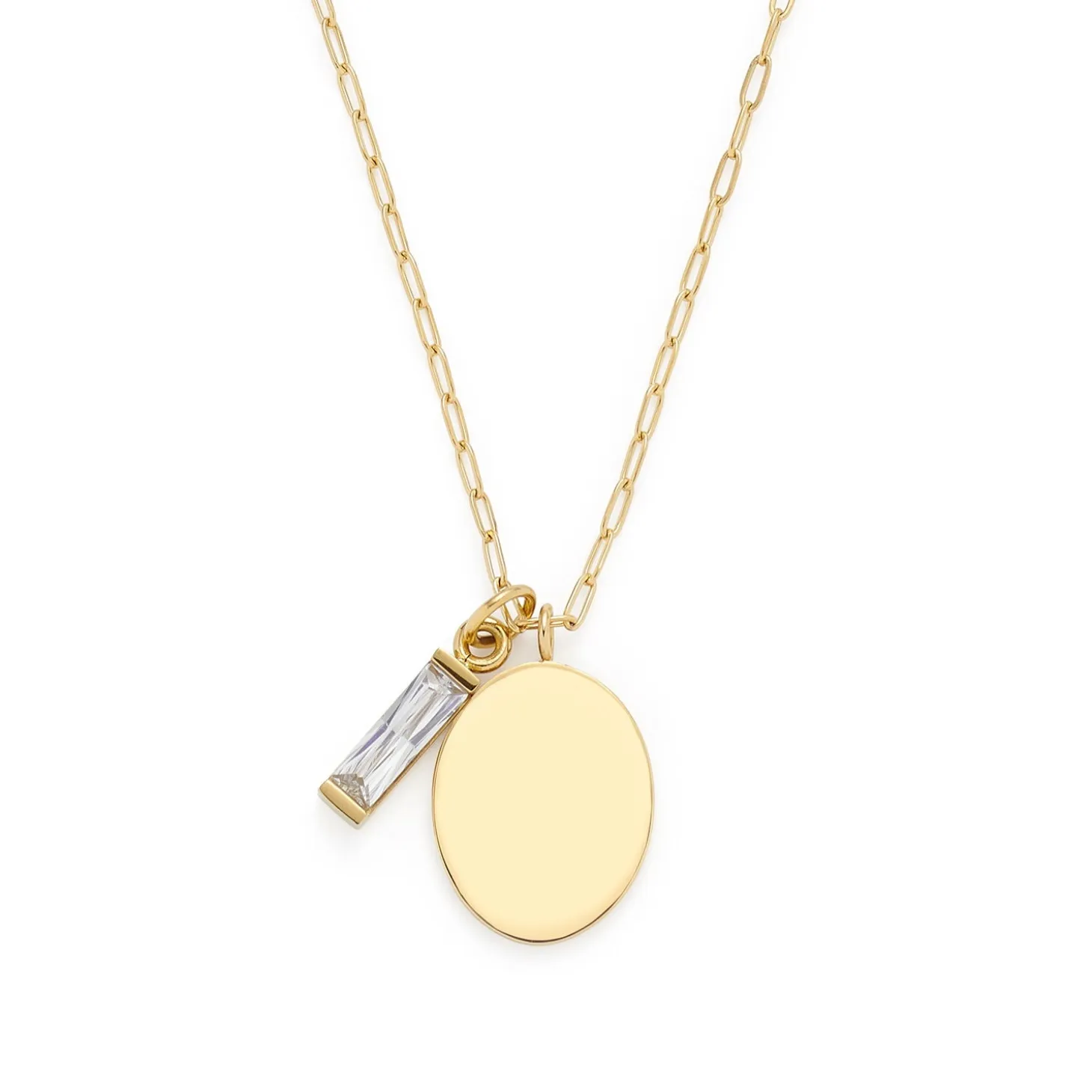 Zeige deine Liebe – sei es für dich selbst, eine enge Freundin oder die Mutter. Diese vergoldete Kette ist ideal, um persönliche Botschaften stilvoll zu übermitteln. Mit ihrer filigranen Gliederstruktur wirkt sie zurückhaltend und setzt den Anhänger gekonnt in Szene. Dieser bietet ausreichend Platz für Gravuren, sei es ein Symbol oder ein Schriftzug. Ein zarter Glasstein unterstreicht das edle und anmutige Design der Kette auf harmonische Weise.