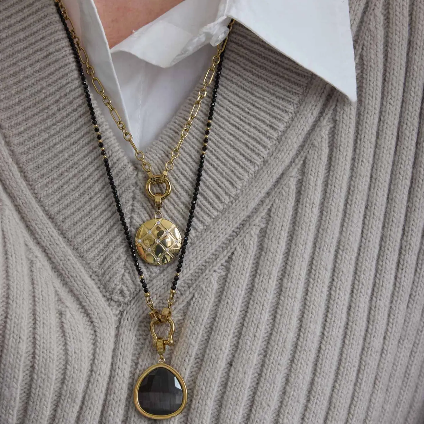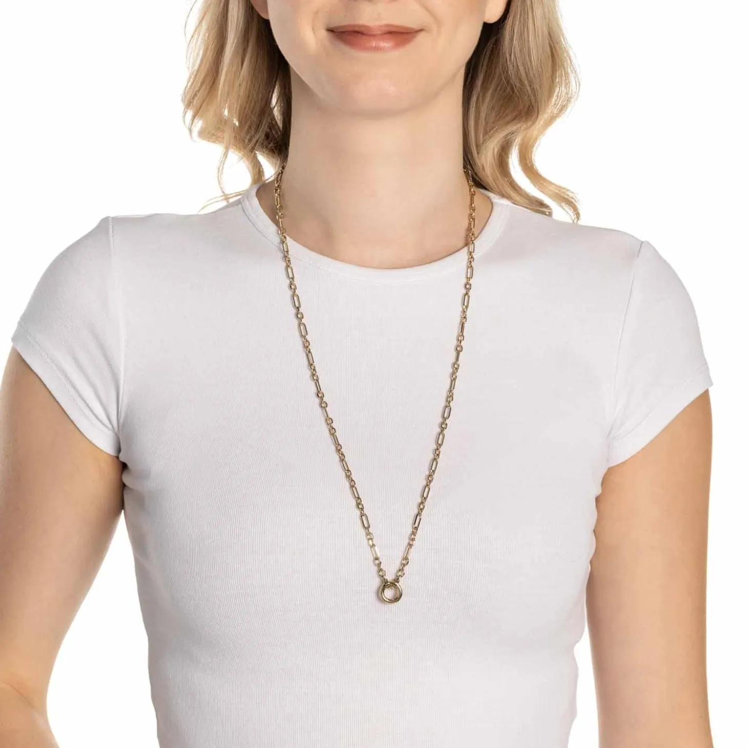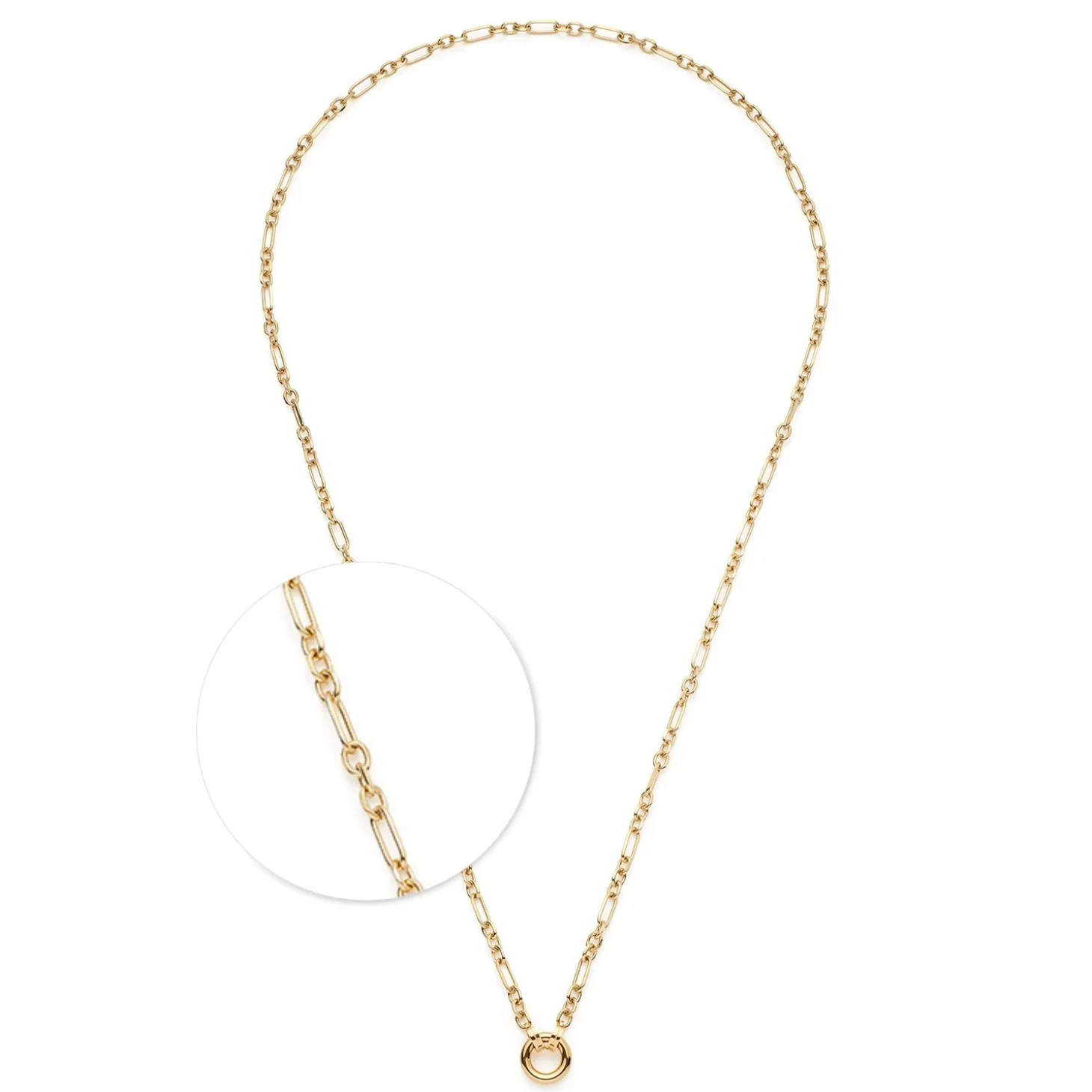 Die Halskette NINON in Goldoptik setzt auf schlichte Raffinesse mit einem Hauch von Glamour. Die Kombination aus kleinen, ovalen Kettengliedern und länglichen Elementen sorgt für einen modernen Look, der sich jedem Outfit anpasst. Mit den zwei Clips kannst Du den dezenten Ring individuell gestalten – wähle Deine liebsten Clip & Mix Anhänger und kreiere Deinen persönlichen Stil. Ob im Alltag oder zu besonderen Anlässen – NINON in Gold ist ein elegantes Statement, das Du immer wieder neu interpretieren kannst