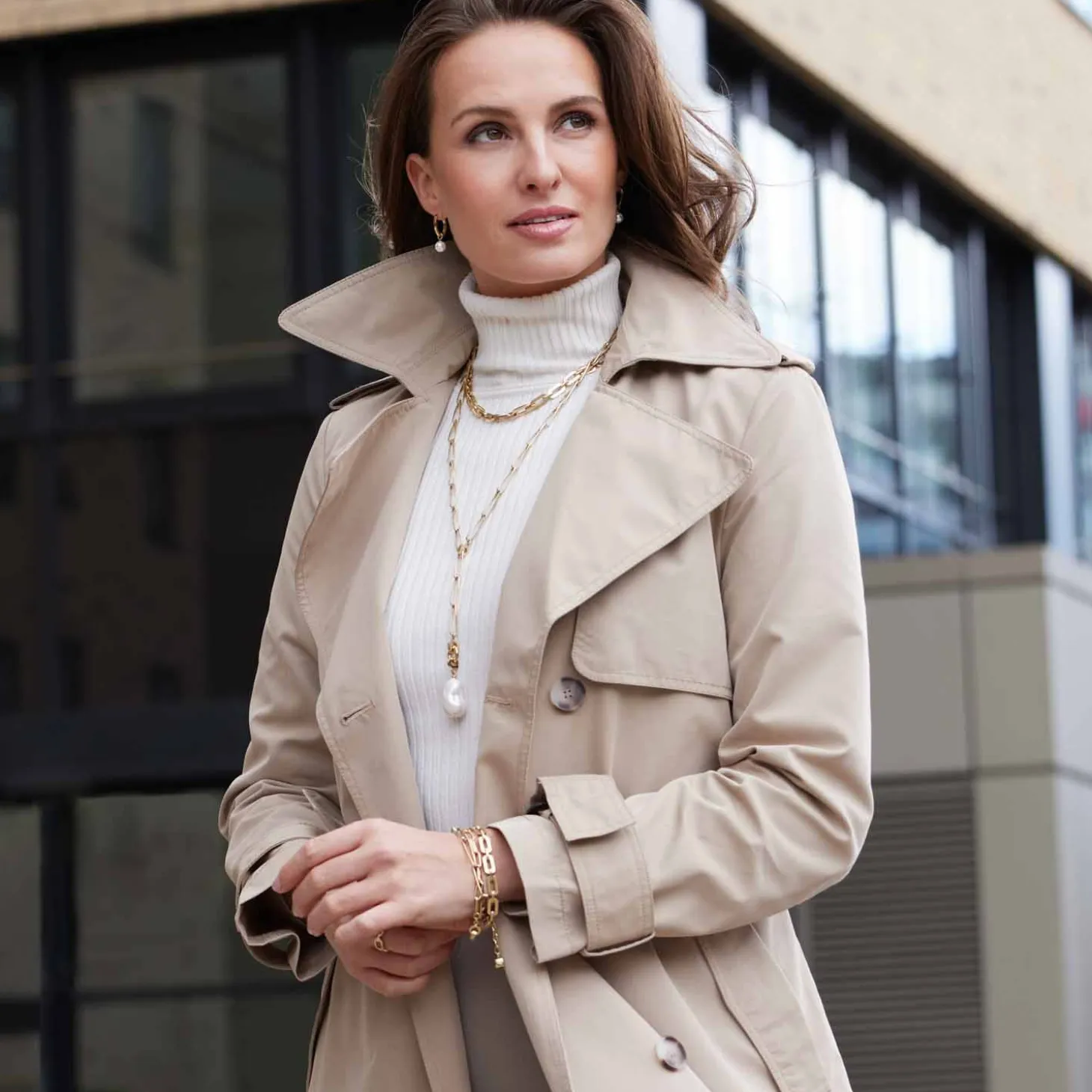 Für minimalistische Trend-Looks ist dieses Collier aus flächigen Kettengliedern eine wunderbare Bereicherung. Mit ihrer goldenen Ionenplattierung, der polierten Oberfläche und einer schlichten Formensprache setzt sich die Kette stilvoll ab. Vor allem in der Kombination mit klassischen Stylingpartnern wie einem Rollkragen fühlt sie sich wohl und wertet jedes Outfit optisch. Schließen lässt sich die Kette mit einem Karabinerverschluss und einer Verlängerungskette.