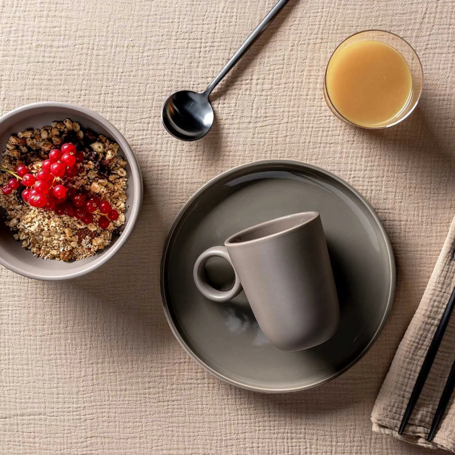 Entdecke jetzt den Teller ROMA – Dein Begleiter für stilvolle Tischarrangements. Lass Dich von seiner eleganten Lässigkeit und zurückhaltenden Schönheit verzaubern. Die Serie bietet vier wundervolle Farbtöne, die Du nach Lust und Laune kombinieren kannst, immer mit einem harmonischen Gesamtbild. Die matte Außenveredelung vereint sich perfekt mit der glänzenden Innenseite und sorgt nicht nur für ästhetische Raffinesse, sondern auch für praktische Vorteile bei der Handhabung und Nutzung. ROMA Teller sind mehr als nur Geschirr – sie sind Ausdruck Deines guten Geschmacks und Deiner Liebe zum Detail. Perfekt für jeden Anlass, ob gemütliches Familienessen oder festliche Tafel. Die Keramik-Kollektion ROMA steht für modernes, harmonisches Design. Natürlich geeignet für Spülmaschine und Mikrowelle. In diesem Set bekommst Du 6 Teller in einem warmen taupe Ton.