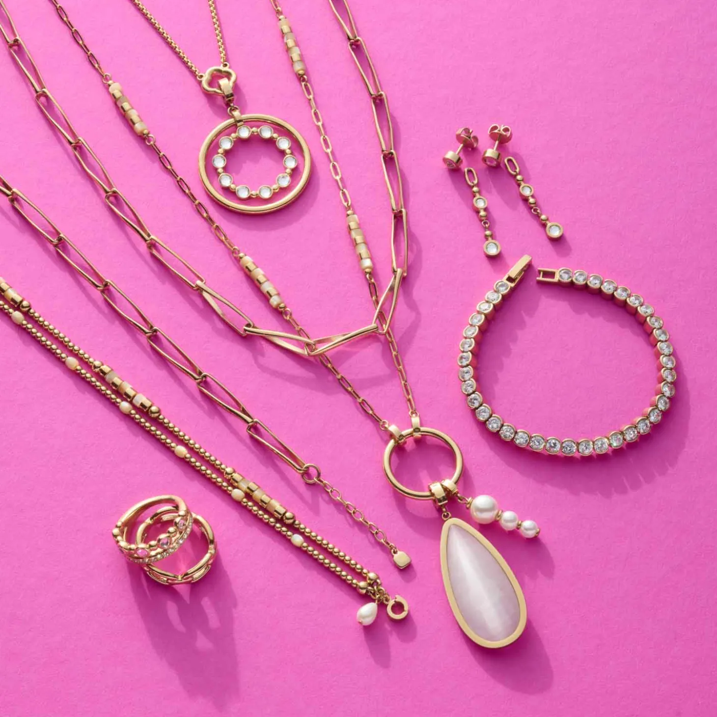 Hier kommt ein Schmuckstück mit Wow-Effekt! Dieser glitzernde Ring begeistert mit einer raffinierten Kombination aus funkelnden Pavé-Steinen und abwechselnd facettierten Steinen und Goldkugeln – ein Design, das den Look des passenden Kettenanhängers perfekt ergänzt. Die glatte Innenseite sorgt für ein angenehmes Gefühl beim Tragen und bietet einen perfekten Platz für eine Gravur. Ob als stilvoller Akzent im Alltag oder als funkelndes Highlight am Abend: Dieser Ring ist vielseitig, elegant und hat das Zeug zu deinem neuen Lieblingsstück. Auch eine wunderbare Geschenkidee!