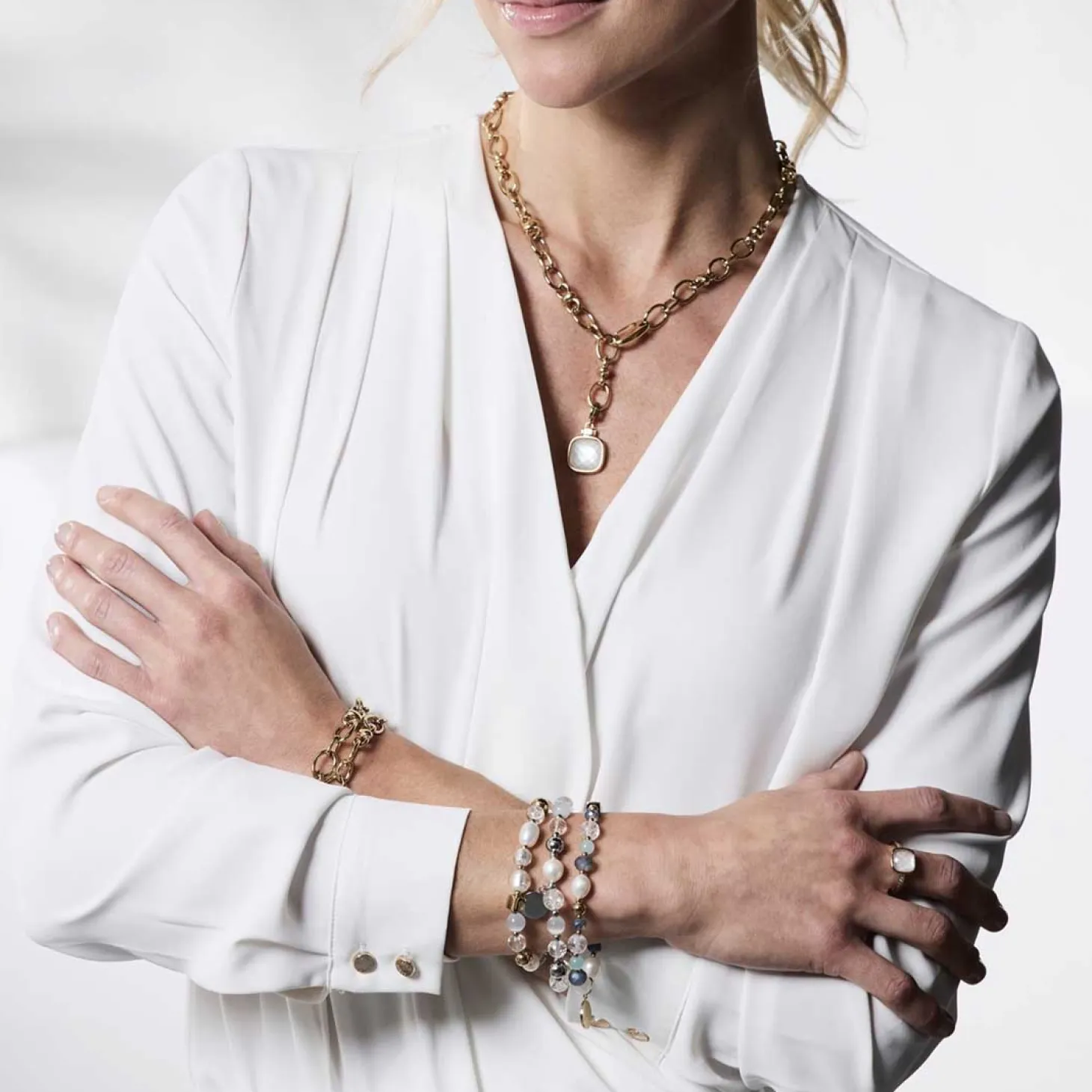Der Ring VIRGINIA von JEWELS BY LEONARDO ist ein elegantes Statement-Piece, das sommerliche Leichtigkeit mit funkelnder Raffinesse verbindet. Im Mittelpunkt steht eine quadratische Glasstein-Dublette im Kissenschliff, die durch ihre feine Perlmuttschicht einen sanften, edlen Schimmer erhält. Die schmale Ringschiene betont den eleganten Charakter des Designs, während beidseitig Zirkonia-Steine für zusätzlichen Glanz sorgen. Der harmonische Mix aus klaren, hellen Steinen und goldfarbenem Glanz verleiht dem Ring seine Anmut als moderner Cocktailring – feminin, stilvoll und ein echter Blickfang. Ob als Highlight zu sommerlichen Outfits oder als Ergänzung zu festlicher Mode, VIRGINIA rundet jeden Look perfekt ab. In Kombination mit der passenden Kette, den Ohrringen oder dem Armband aus der Serie entsteht ein edles, abgestimmtes Schmuck-Set von JEWELS BY LEONARDO.