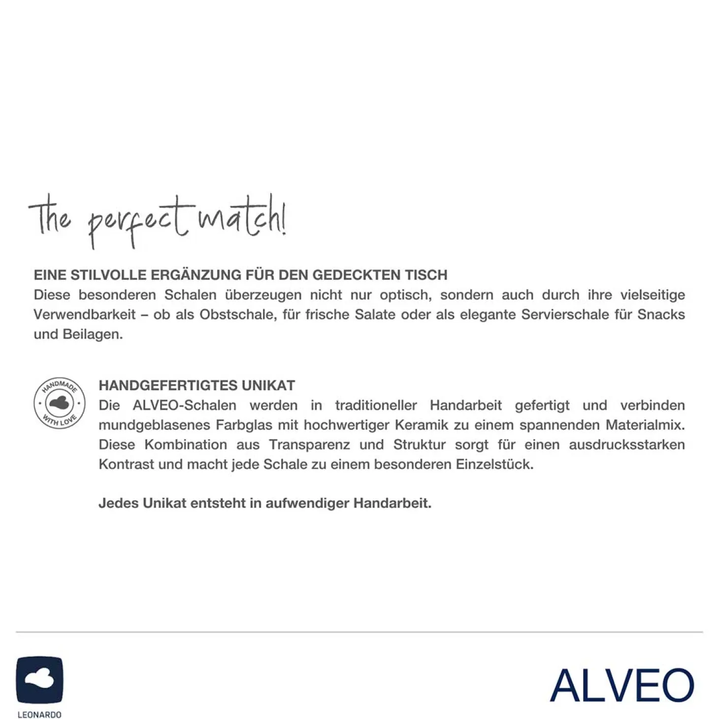 Entdecke die exklusive Schale ALVEO in edlem Taupe – die perfekte Wahl für alle, die das Besondere lieben. Diese hochwertige Glasschale vereint Eleganz und Funktionalität und eignet sich ideal für Salate, Desserts oder frisches Obst. Mit ihrem zeitlosen Design setzt sie nicht nur deinen Speisen in Szene, sondern wertet jeden Tisch auf. Ob beim eleganten Dinner oder beim gemütlichen Frühstück, die ALVEO Schale bringt einen Hauch von Luxus in deinen Alltag. Greif zu und genieße die exquisite Qualität und Ästhetik, die diese Schale zu bieten hat. Für alle, die nicht nur genießen, sondern auch stilvoll servieren wollen.