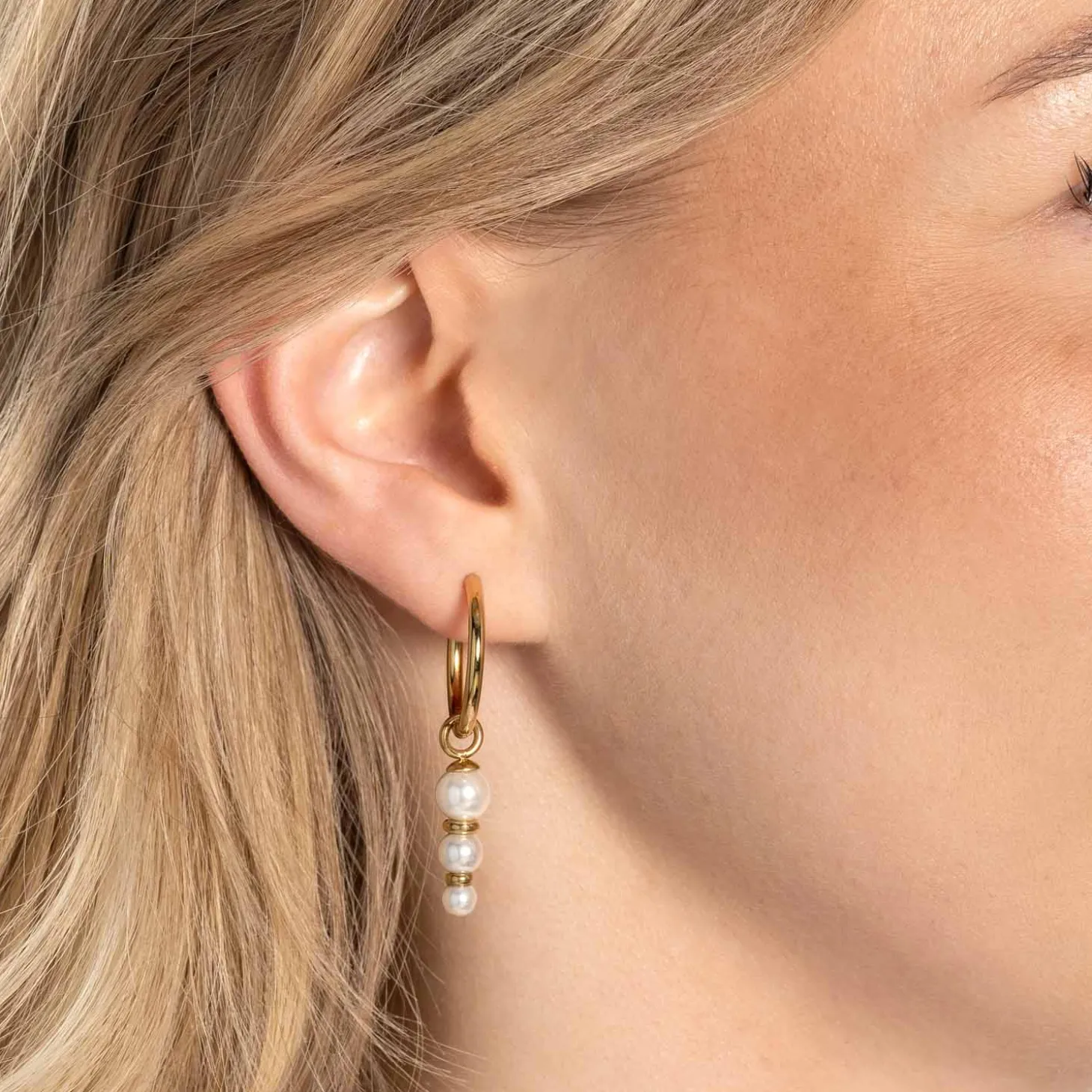 Das Set JUSTINE bringt zeitlose Eleganz an Deine Ohren. Drei edle, natürlich wirkende Perlen in sanftem Größenverlauf reihen sich stilvoll untereinander und werden von feinen, goldfarbenen Scheiben akzentuiert. Mit dem offenen Ring lassen sich die Einhänger ganz einfach an Deine Lieblingskreolen anbringen – perfekt, um Deinem Ohrschmuck im Handumdrehen einen klassischen, femininen Touch zu verleihen. Ob für den Alltag, das Business-Outfit oder besondere Anlässe – mit JUSTINE bist Du immer stilvoll unterwegs.