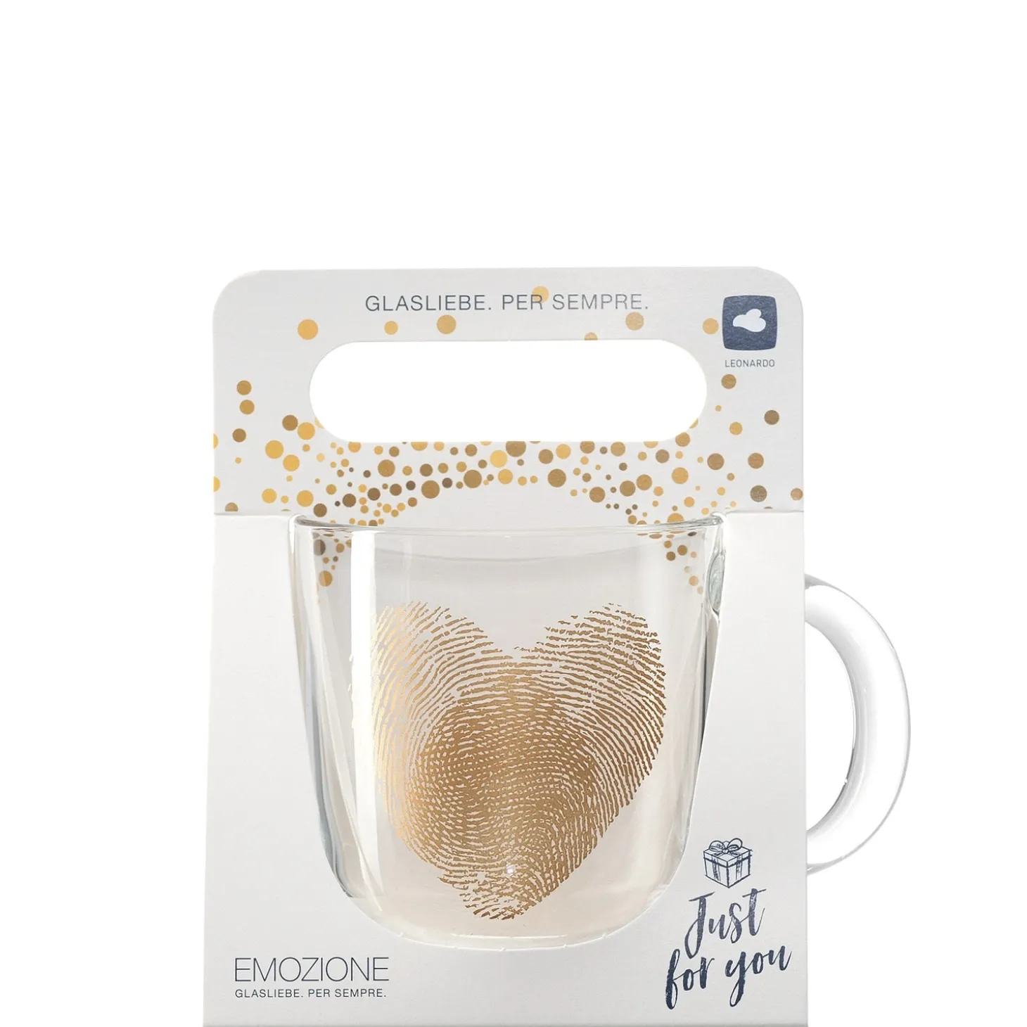 Möchtest du ein Geschenk, das dein Herz berührt? Unsere Glastasse mit einem goldenen Fingerabdruck-Herzdesign ist die perfekte Wahl. Diese Tasse strahlt Gemütlichkeit und Schönheit aus. Der goldene Fingerabdruck verleiht ihr einen Hauch von Eleganz und Einzigartigkeit. Genieße deine Lieblingsgetränke in dieser stilvollen Tasse, sei es Kaffee am Morgen oder Tee am Abend. Die hochwertige Glasqualität sorgt dafür, dass du den vollen Geschmack deines Getränks erlebst. Die Tasse liegt gut in der Hand und verwandelt jeden Moment in etwas Besonderes. Verschenke diese Glastasse an einen geliebten Menschen oder gönne sie dir selbst, um deine Trinkgewohnheiten aufzuwerten. Zeige deine Zuneigung mit diesem einzigartigen Geschenk, das Herzen im Sturm erobert. Erlebe den Luxus in jedem Schluck.