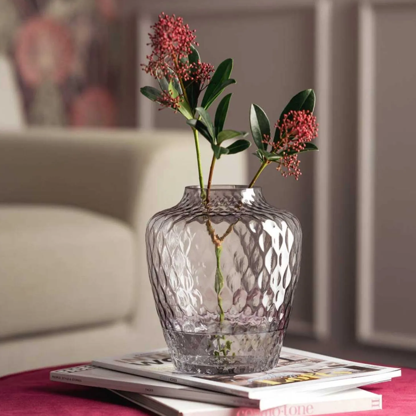 Die elegante Vase GIULIA in edlem Grau ist ein wahrer Blickfang! Diese wunderschöne Glasvase besticht durch ihre einzigartige Struktur, die jedem Raum eine besondere Note verleiht. Ob für frische Blumen oder als stilvolles Dekorationsobjekt V GIULIA setzt immer einen Akzent. Ihr zeitloses Design fügt sich harmonisch in jede Einrichtung ein und sorgt für eine Atmosphäre von Stil und Raffinesse. Lass dich von der Vielseitigkeit dieser Vase begeistern und bringe einen Hauch von Eleganz in dein Zuhause. Hol dir die Vase GIULIA und erlebe, wie sie dein Ambiente verwandelt!