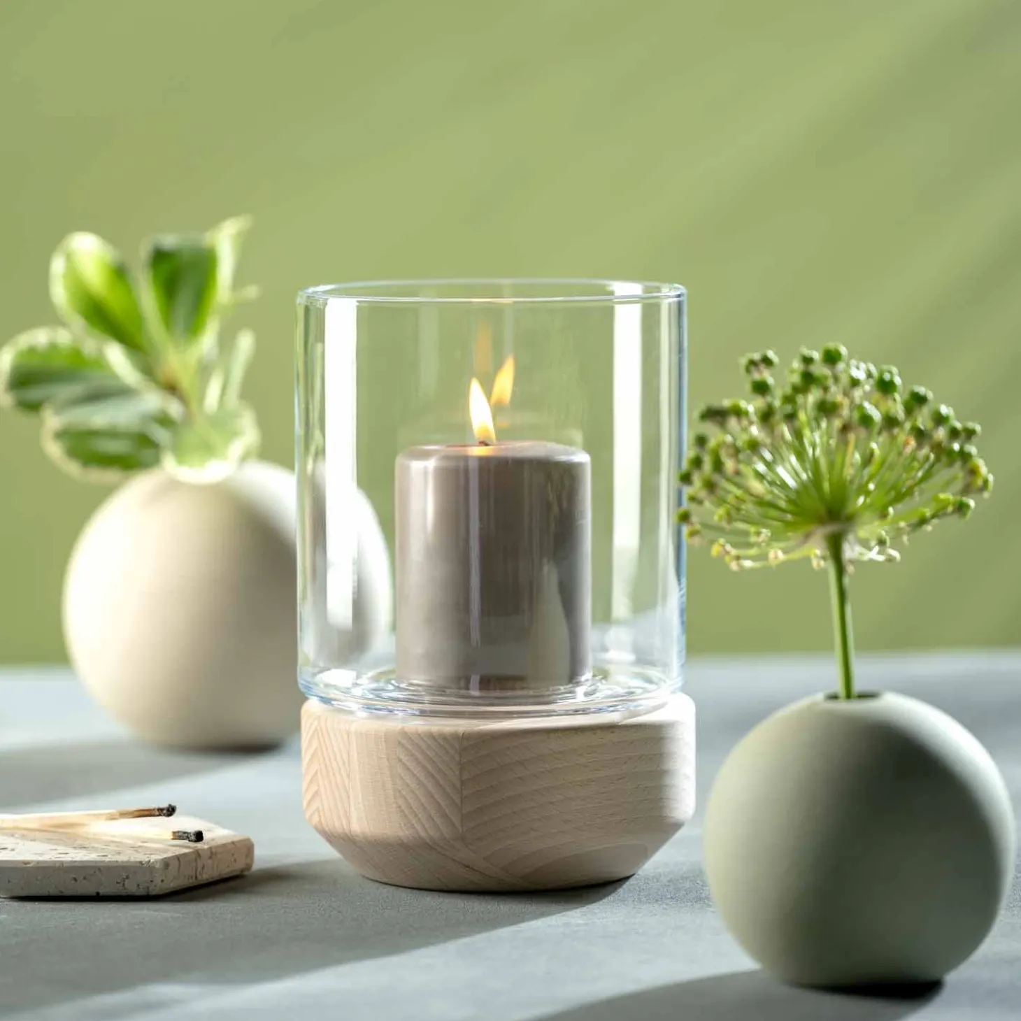 Tauche dein Zuhause in ein sanftes Licht mit unserem Windlicht auf Buchenholzsockel LEGNO. Seine zylindrische Form und die geradlinige Gestaltung verkörpern moderne Eleganz. Das warme Leuchten zaubert eine behagliche Atmosphäre in jeden Raum. LEGNO fügt sich perfekt in verschiedenste Einrichtungsstile ein und wird zum Blickfang auf deinem Tisch, Regal oder der Fensterbank. Hergestellt aus hochwertigem Buchenholz und in modernem Design gefertigt, vereint dieses Windlicht Ästhetik mit Funktionalität. Setze ein Statement in deinem Zuhause V mit LEGNO, wo zeitlose Schönheit auf zeitgenössisches Design trifft.